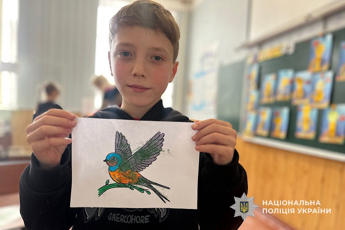 Творча частина включала розфарбовування пташок та прикрашання їх блискітками. Наприкінці зустрічі діти разом із поліцейською розвісили на деревах двору ліцею спеціальні ласощі для пернатих — поживне печиво із зерняток, прив’язане безпечними для птахів нитками.