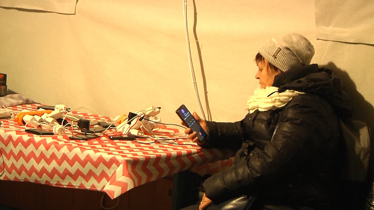 У теплому наметі люди зможуть підзарядити гаджети, зігрітися, випити чай та перекусити.
