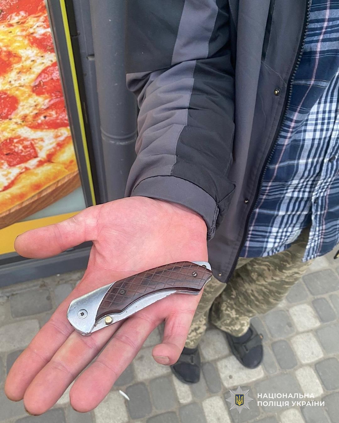 Оперативники кримінальної поліції Дніпра разом із поліцейськими Соборного району за дві години встановили особу нападника, затримали його та вилучили знаряддя злочину — ніж.