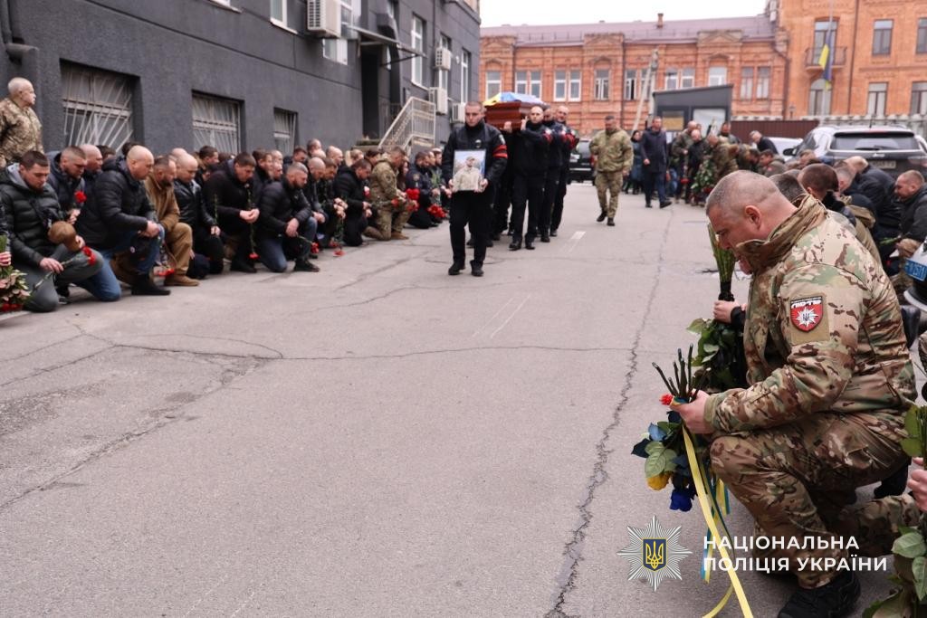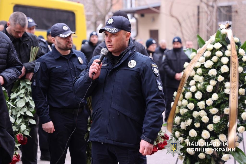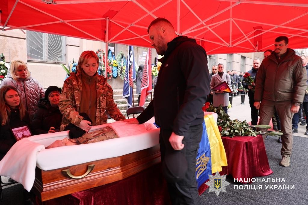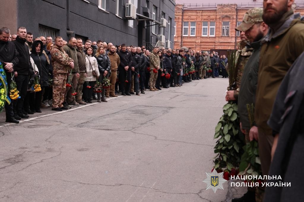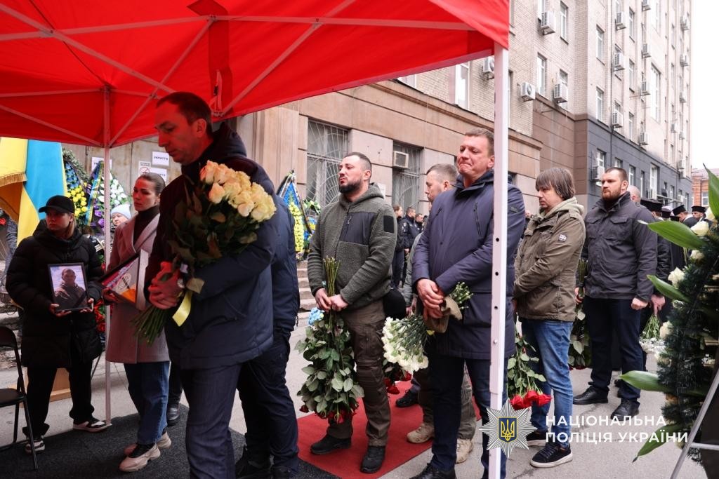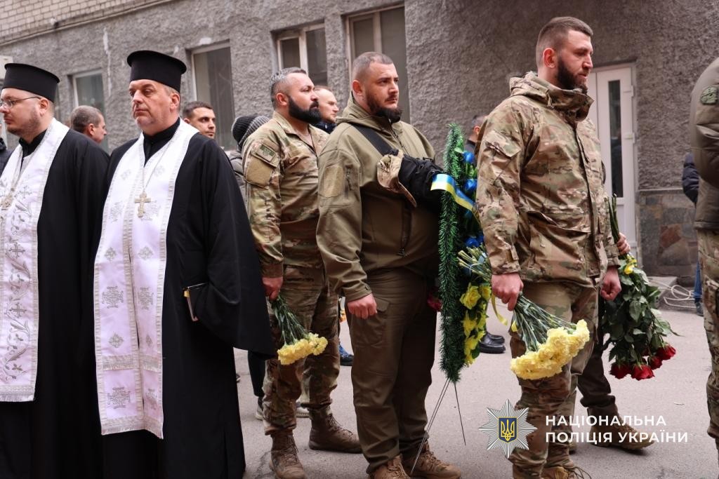 Сьогодні, 17 березня, аби підтримати рідних та проститись, віддати останню шану колезі і побратиму прийшли Голова Національної поліції Іван Вигівський, заступник Голови НПУ Олександр Фацевич, командир бригади «Лють» Олександр Нетребко, начальники ГУНП, колеги, друзі та бойові побратими командира.