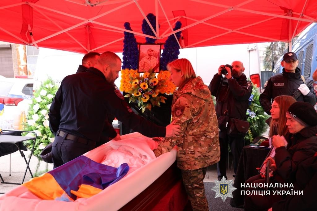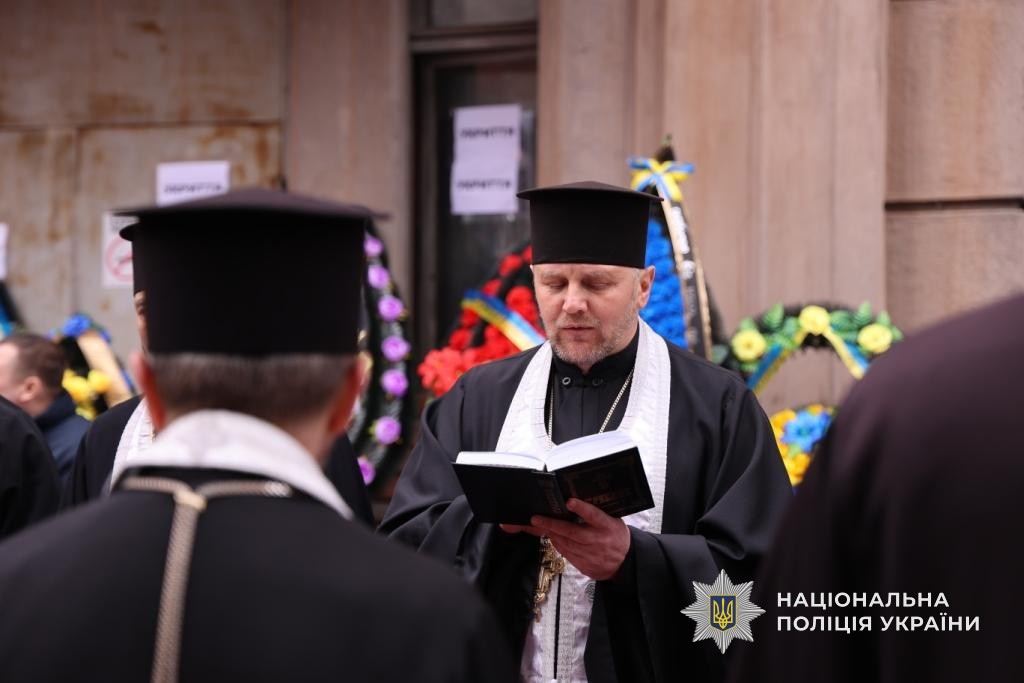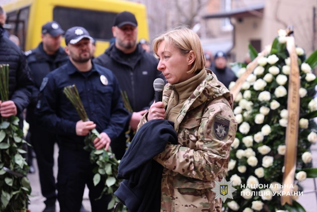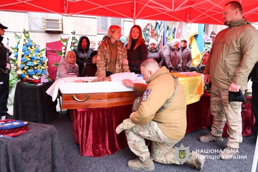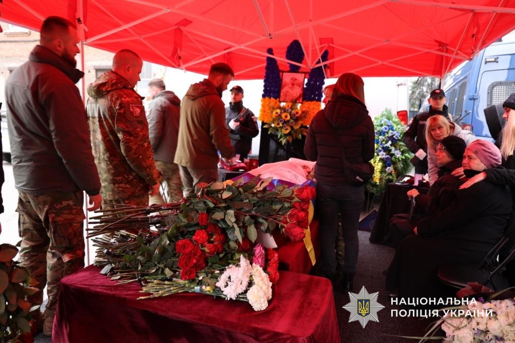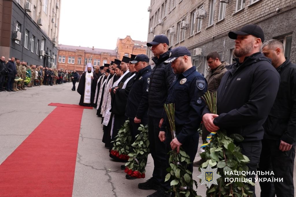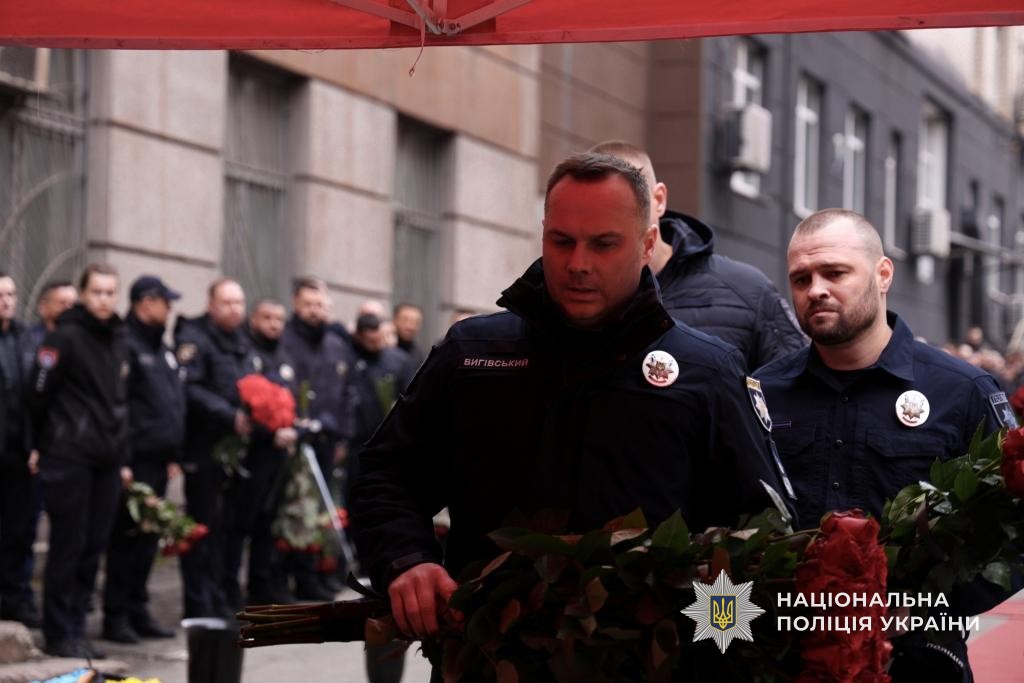 Сьогодні, 17 березня, аби підтримати рідних та проститись, віддати останню шану колезі і побратиму прийшли Голова Національної поліції Іван Вигівський, заступник Голови НПУ Олександр Фацевич, командир бригади «Лють» Олександр Нетребко, начальники ГУНП, колеги, друзі та бойові побратими командира.
