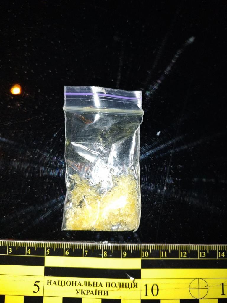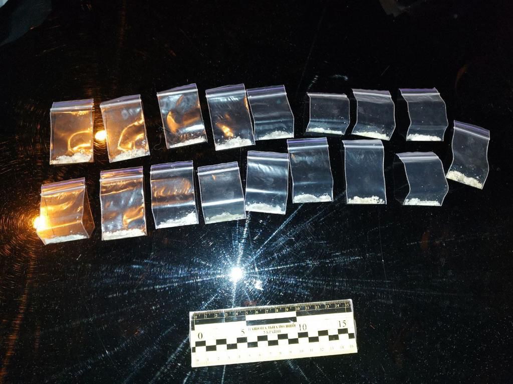 6 березня під час санкціонованого обшуку в автомобілі 46-річного чоловіка було вилучено 6 сліп-пакетів з порошкоподібною речовиною, схожою на метамфетамін, та один згорток з рослинною речовиною. Також під час поверхневої перевірки у куртці збувача було виявлено 18 сліп-пакетів з порошкоподібною речовиною, схожою на метамфетамін.