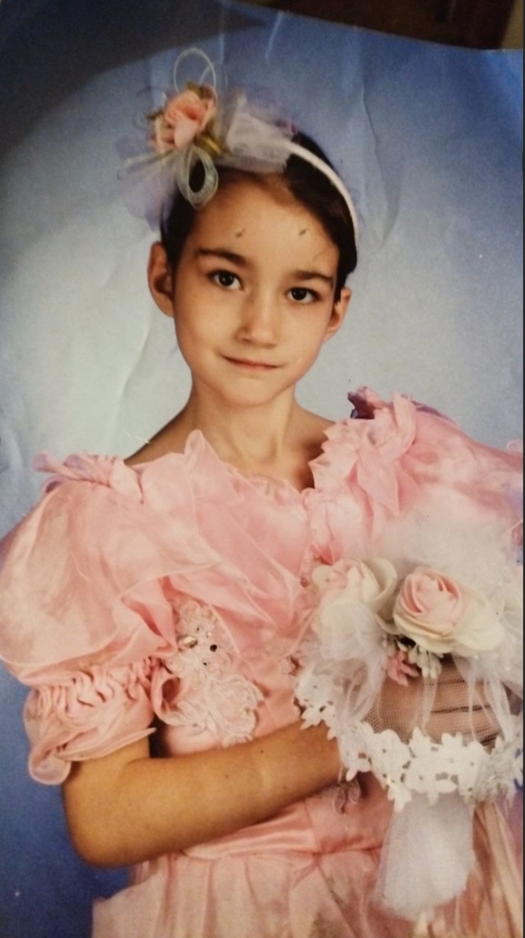 1. Кароліна, зріст 130 см, худощавої тілобудови, волосся чорне довге, очі карі, одягнена у синє пальто з капюшоном, шапка сіра з вушками сірого кольору.