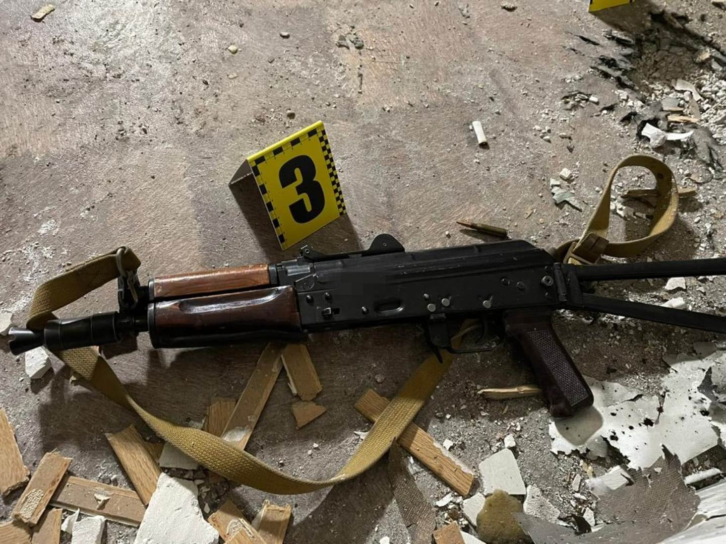 Чоловіка затримали в порядку ст. 208 КПК України. З місця події вилучили автомат Калашникова та фрагменти гранат.