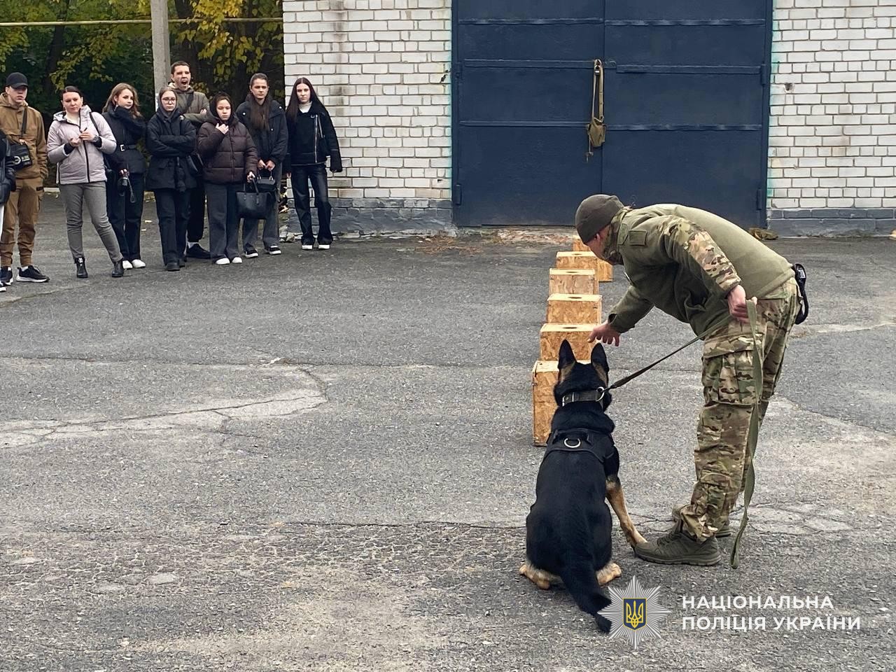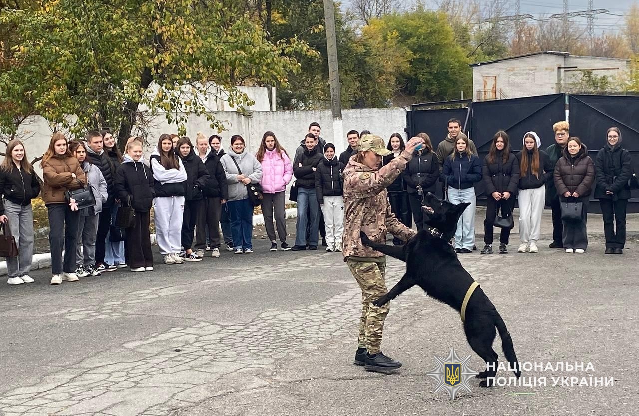 У Дніпрі студенти познайомилися з роботою поліцейських-кінологів та їх чотирилапих помічників