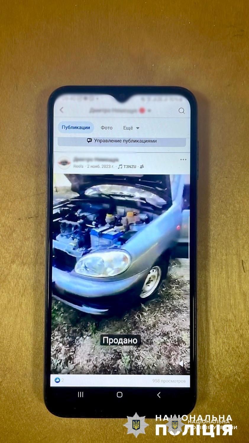Фігурант створював фейкові акаунти у соціальних мережах, де розміщував неправдиві оголошення про продаж автомобілів. Під приводом бронювання транспорту, переоформлення та оплати за послуги зловмисник вимагав передоплату. Після чого переставав виходити на зв’язок. Кошти потерпілі перераховували на банківські картки підставних осіб.