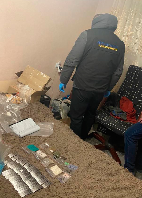 Оперативники управління боротьби з наркозлочинністю в Дніпропетровській області спільно зі слідчим відділення поліції № 1 Дніпровського районного управління поліції отримали інформацію про те, що 31-річний місцевий мешканець займається незаконним збутом психотропних речовин. Наркодилера затримали 22 лютого біля одного з поштових відділень, під час відправлення замовлень споживачам. Під час огляду затриманого та в ході обшуку за місцем його мешкання поліцейські виявили сліп-пакети з психотропною речовиною «альфа-PVP» вагою 600 г, 100 г амфетаміну, гашиш, канабіс, понад 280 пігулок лікарського препарату, який містить психотропну речовину, пістолет з набоями, електронні ваги та мобільний телефон, який використовувався для здійснення відправлень.