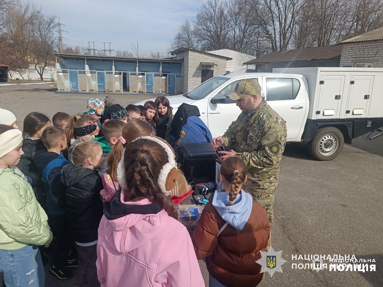 Службові собаки продемонстрували дітям свої навички та вміння, яким їх навчили поліцейські-кінологи: затримання умовного правопорушника, загальний курс слухняності, пошук наркотичних речовин та прекурсорів у ручній поклажі та в автотранспорті.