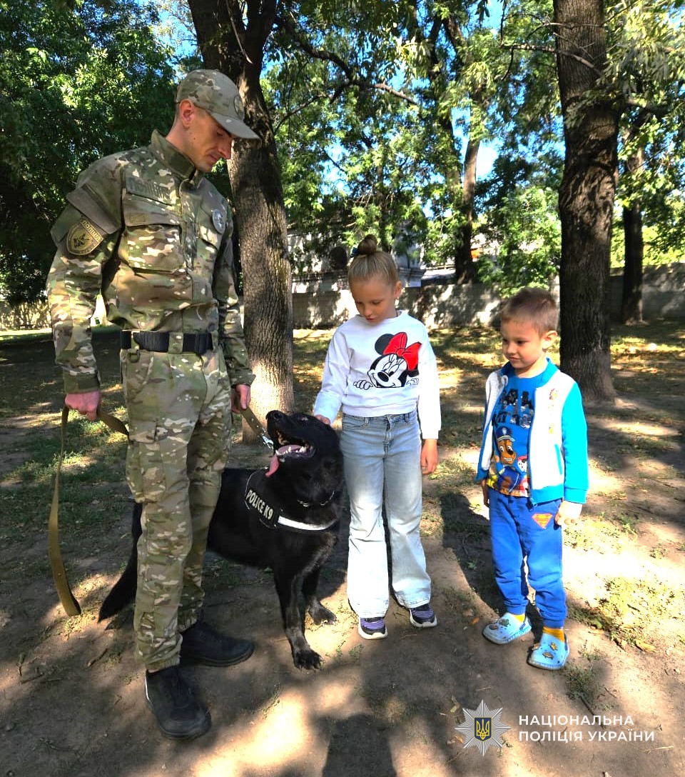 У Кам`янському поліцейські познайомили дітей з роботою кінологічної служби та зі службовою собакою, на ім’я Скай