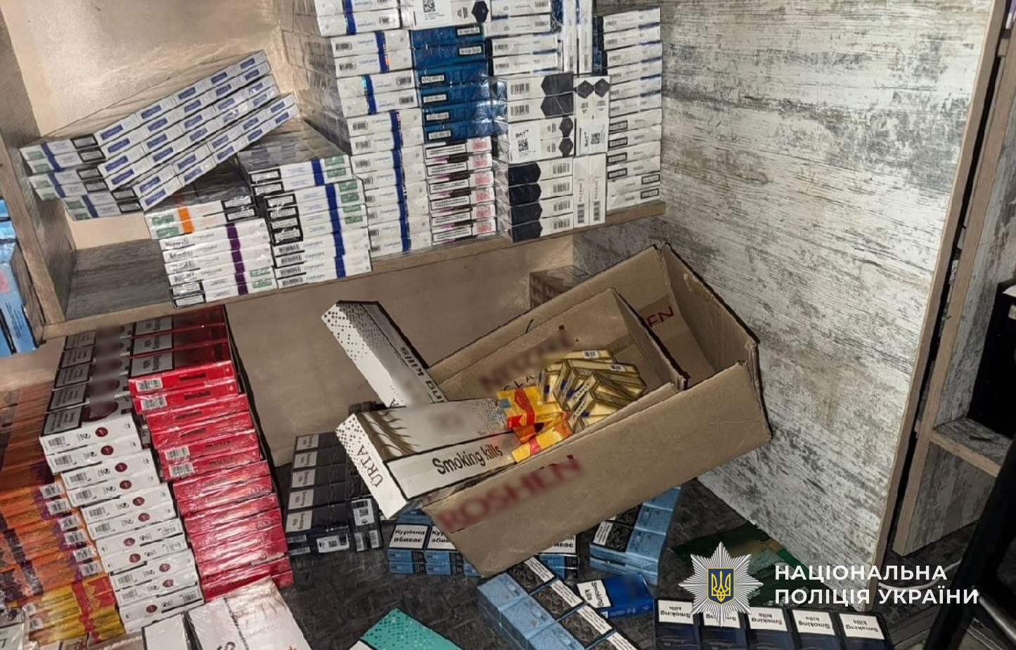 Під час санкціонованого обшуку правоохоронці виявили та вилучили партію тютюнових виробів без марок акцизного податку. Незаконну продукцію реалізовували у торговельних закладах у центрі міста.