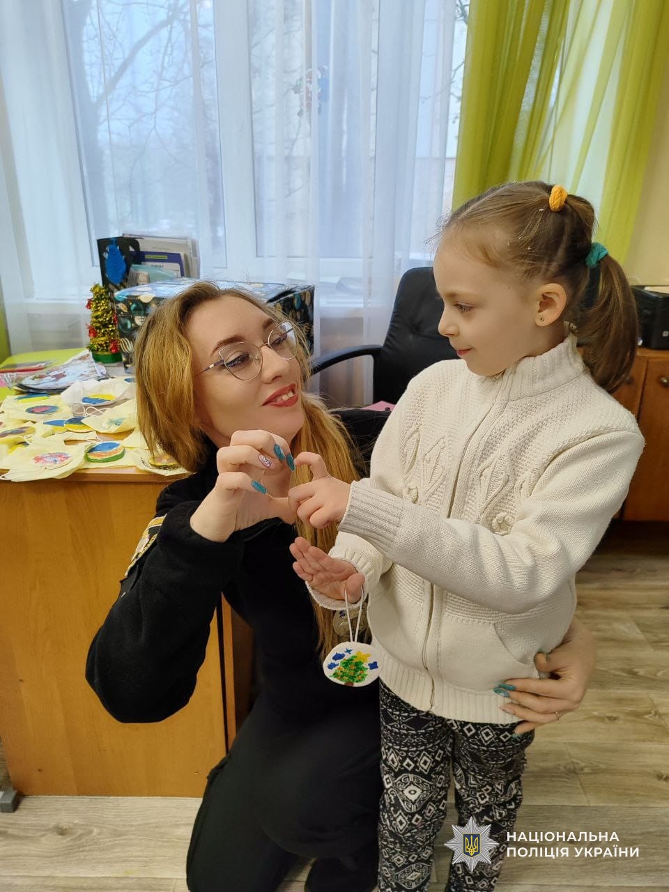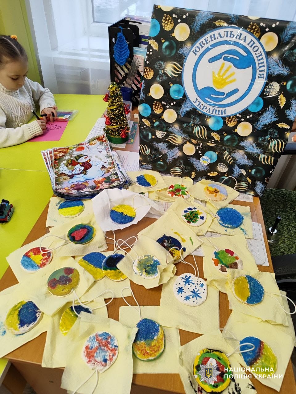 Ювенальні поліцейські Кам’янського РУП разом з першачками НВК № 25 «Волошка» зібрали подарунки для наших військових. Діти з неабияким завзяттям та захопленням долучились до виготовлення різдвяних наборів. Разом з поліцейськими вони розфарбували гіпсові фігурки у сині та жовті кольори, вклали у кожній виріб усю свою любов та турботу. До кожного малюнку додали теплі слова подяки нашим захисникам, аби підтримати їх бойовий дух. Подарунки передадуть нашим воїнам, які захищають Україну на передових позиціях фронту. Діти впевненні, що теплі шкарпетки зігріють нашим військовим ноги, а малюнки - серця.