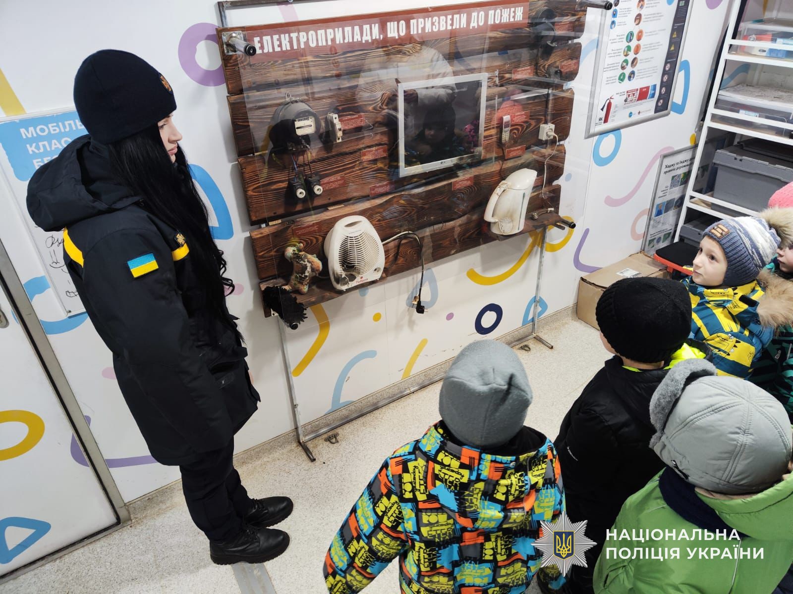На базі мобільного класу безпеки поліцейські спільно з рятувальниками провели для дошкільнят пізнавальний урок, під час якого розповіли про найважливіші правила безпечної поведінки під час прогулянки та вдома.