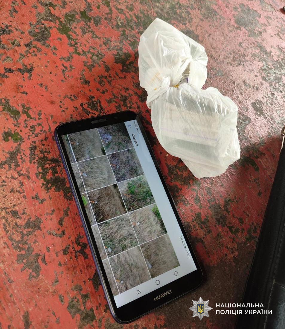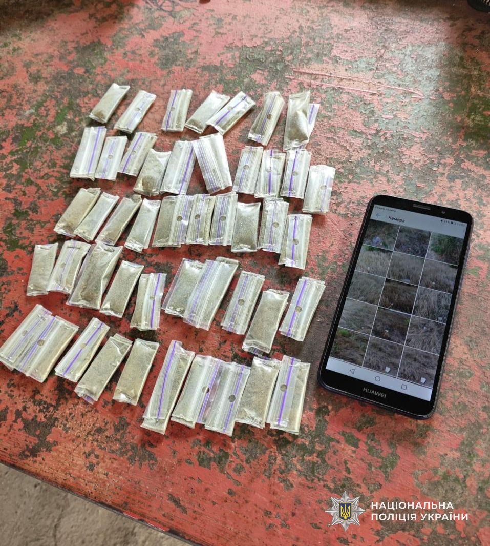 Зловмисник розкладав розфасовані пакети з наркотиками та фотографував місця «схованок». Загалом було вилучено майже 240 сліп-пакетів із забороненими речовинами.
