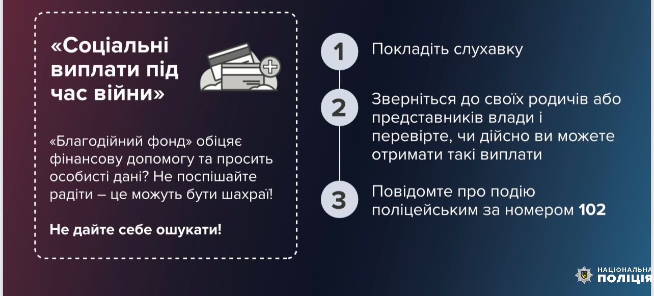 - у разі підозри шахрайських дій - негайно повідомляйте правоохоронні органи.