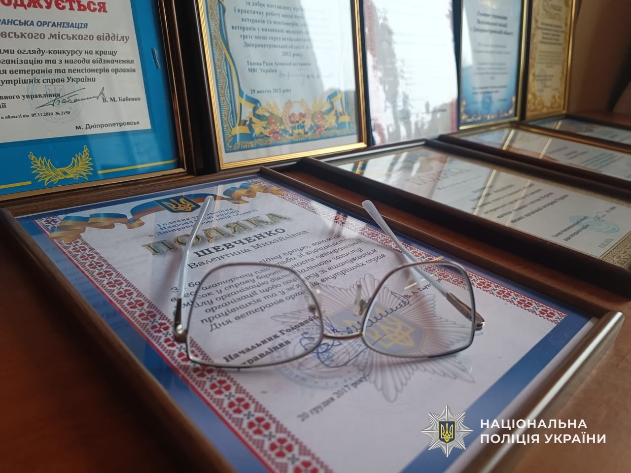 Заступник очільника поліції Дніпропетровщини відзначив ветеранів та пенсіонерів МВС України грамотами. Окремо він завдячив голові ветеранської організації Валентині Михайлівні Шевченко, яка протягом багатьох років опікується організацією та наданням допомоги ветеранам й пенсіонерам. Вона допомагає їм у вирішенні соціальних питань, підвищенні їх ролі у формуванні професіоналізму та вихованні молодих працівників МВС України.