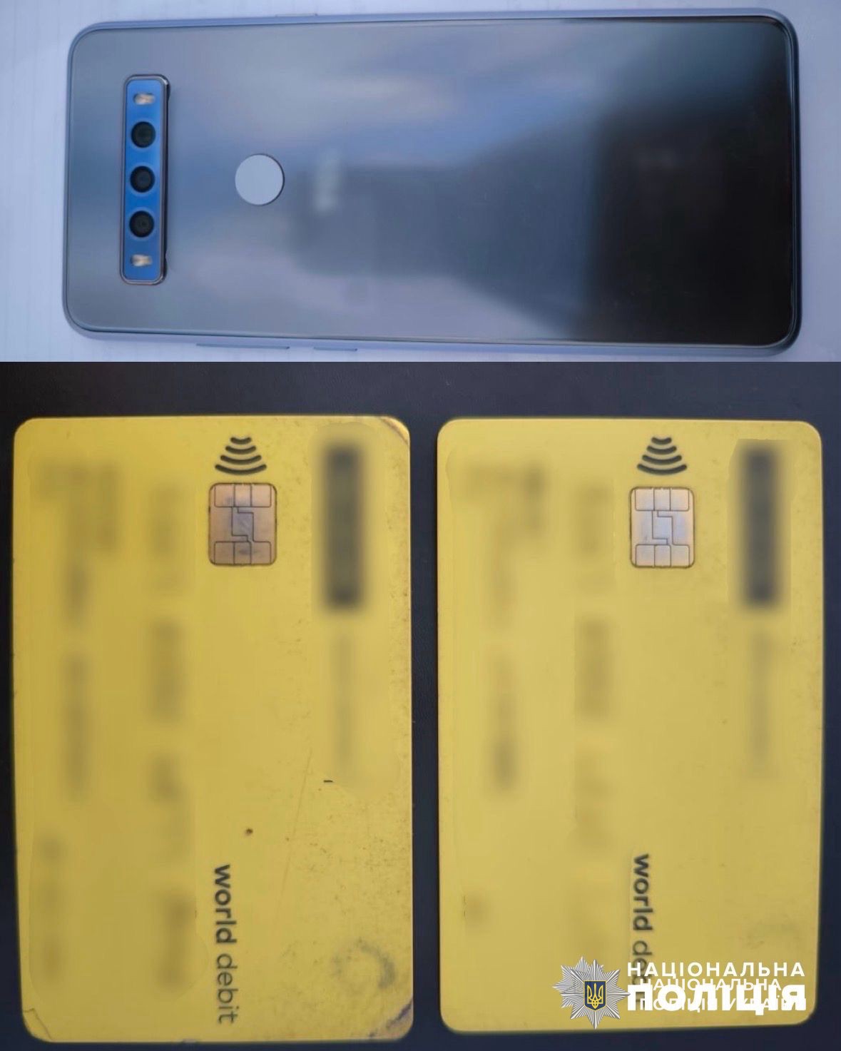Другий, 39-річний фігурант, перебуваючи вдома у потерпілого, помітив на кухні телефон та дві банківські картки. Скориставшись відсутністю власника, забрав його майно.