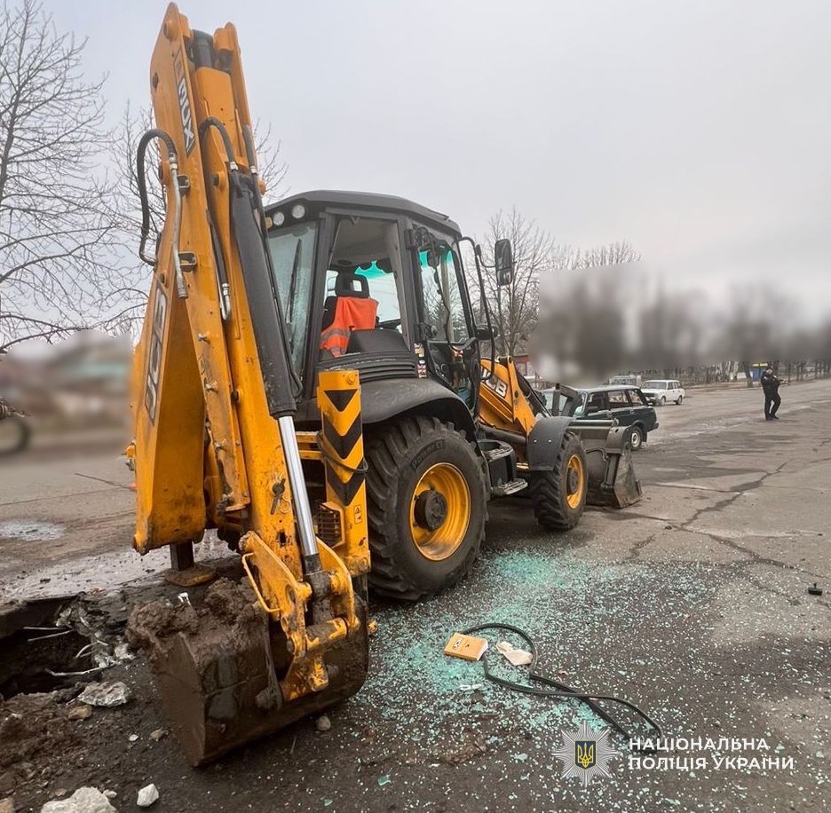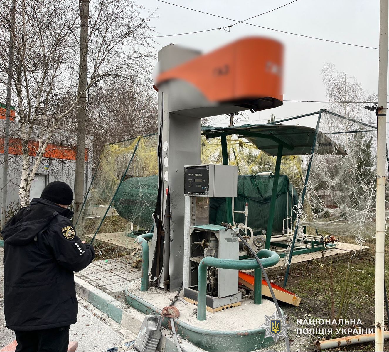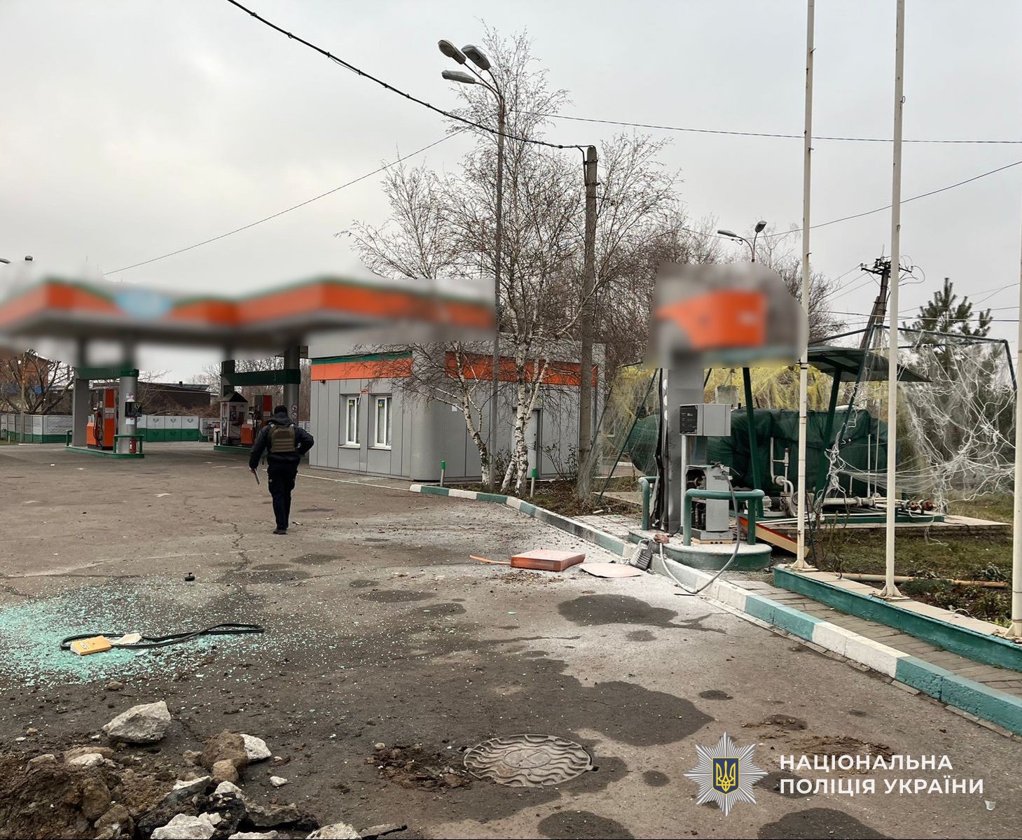 Під час обстеження місць влучань поліцейські виявили та задокументували пошкодження трьох АЗС, вантажних автомобілів, мікроавтобусу, екскаватора, приватної оселі та господарської споруди. Ворожими снарядами понівечено транспортні засоби, в будівлях потрощено дахи та стіни.