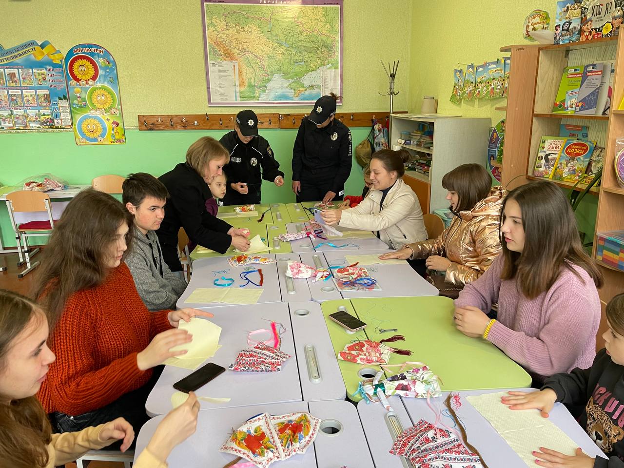 14 жовтня діти долучилися до патріотичної ініціативи поліцейських ювенальної превенції Новомосковського районного відділу поліції для підтримки захисників України. Правоохоронці організували захід з виготовлення стародавніх оберегів, які захищатимуть наших військових на фронті, допоможуть відчути нашу любов і турботу.