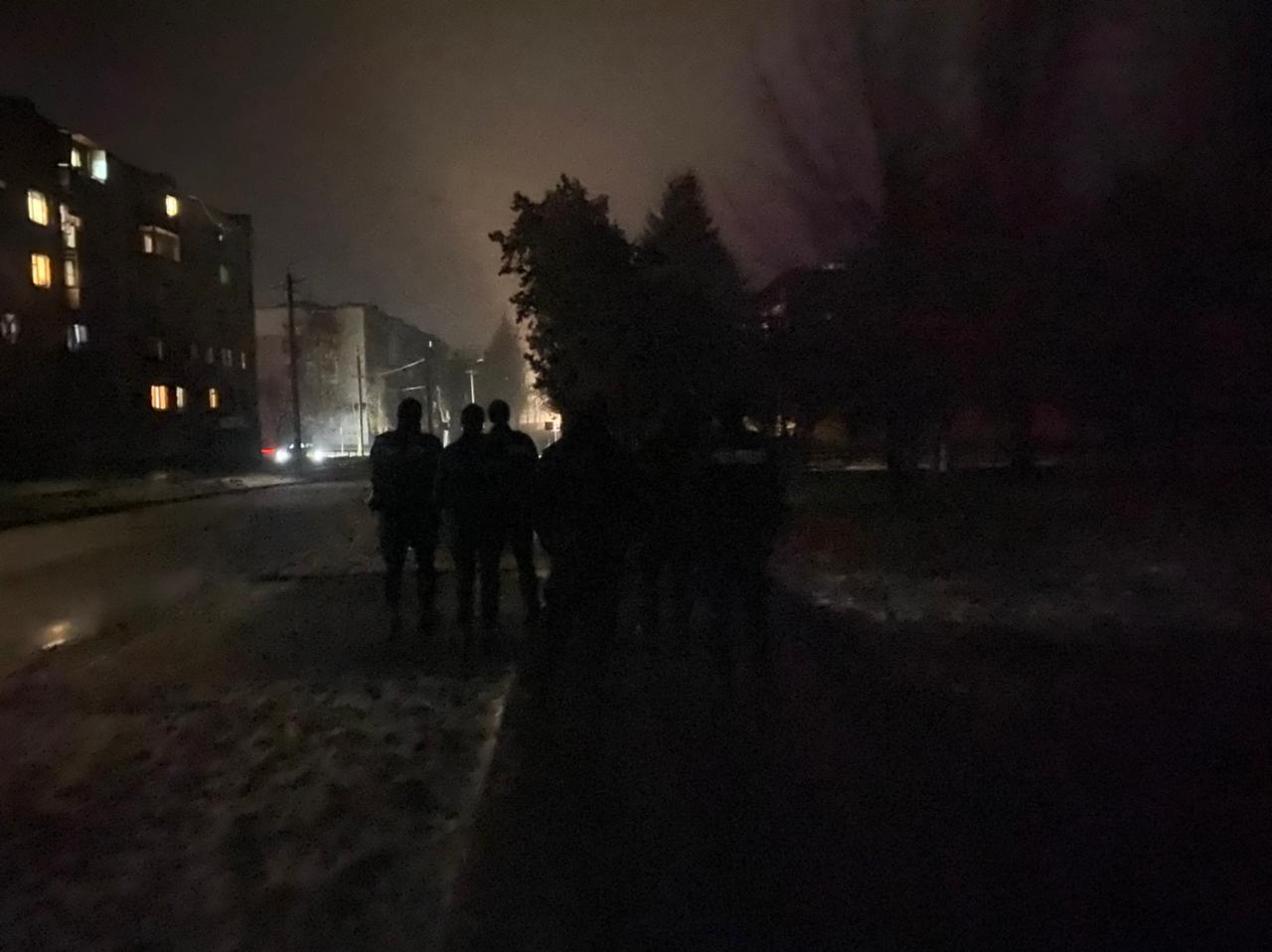 Поліцейські слідкують за безпекою та правопорядком на вулицях міста під час масового відключення електропостачання.
