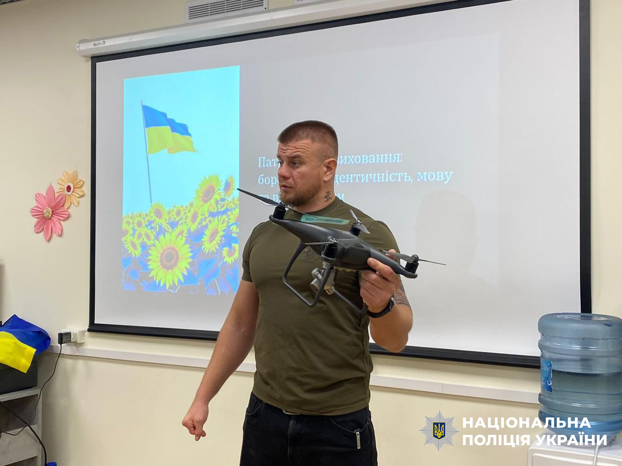 На зустріч також прийшли ветерани, які захищали Україну. Вони розповіли про сучасні технології на війні та показали, як працюють дрони. Гімназисти змогли зблизька побачити ці пристрої та дізнатися, як вони допомагають нашим захисникам.