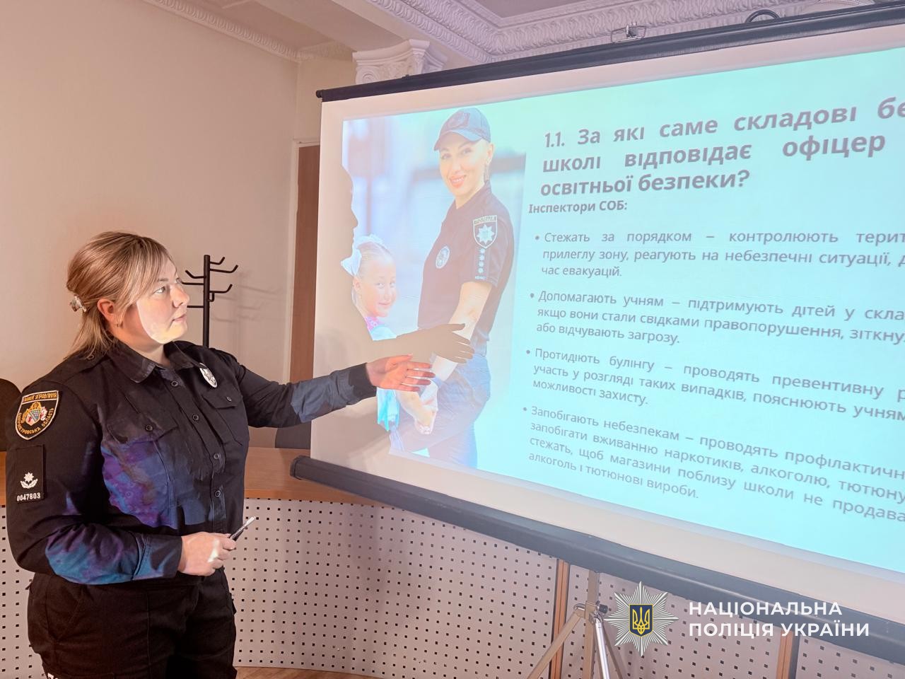Під час зустрічі обговорили важливість співпраці між поліцією та освітянами у кризових ситуаціях, а також необхідність своєчасного інформування правоохоронців про будь-які підозрілі або небезпечні випадки. У громаді вже передбачено 13 посад інспекторів, набір на які проводиться як серед діючих поліцейських, так і шляхом відкритого конкурсу.