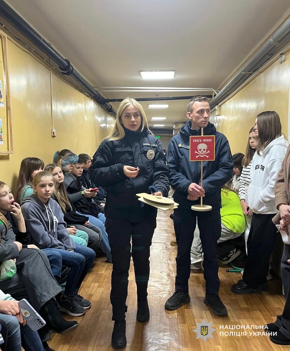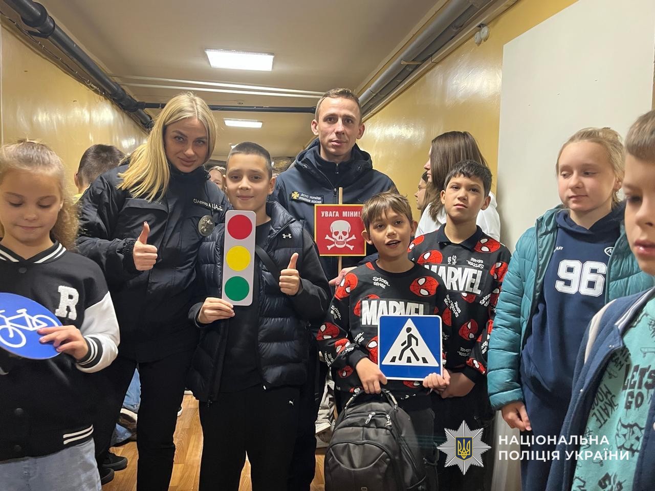 Інспекторка ювенальної превенції Альона Сіленко та рятувальники пояснили дітям, як можуть виглядати міни або боєприпаси. Наголосили, що у разі виявлення підозрілих предметів не можна до них торкатися чи наближатися, а слід повідомити дорослих або зателефонувати за номерами 101 чи 102. Крім того, поліцейська повторила з дітьми основні правила дорожнього руху, закликала бути уважними й обережними.