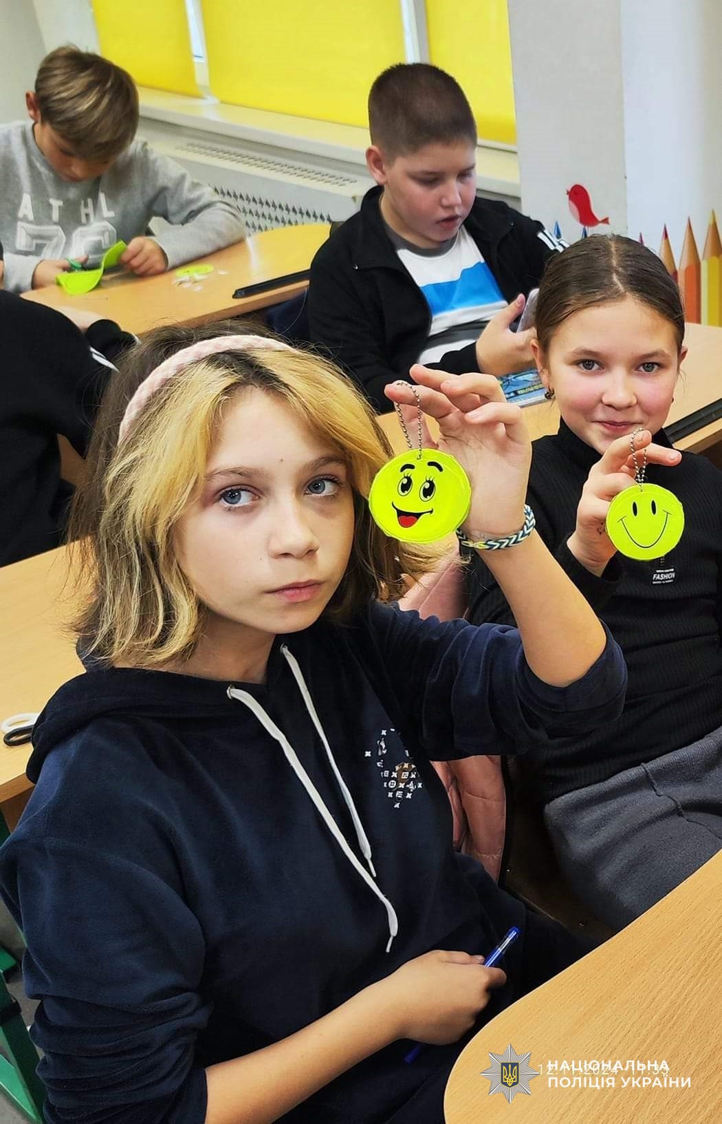 Спільно з поліцейською діти створили власні флікери, використовуючи спеціальні світловідбиваючі смайли. Вони пообіцяли їй, що прилаштують їх на на рюкзаки чи куртки, щоб стати видними на дорозі.