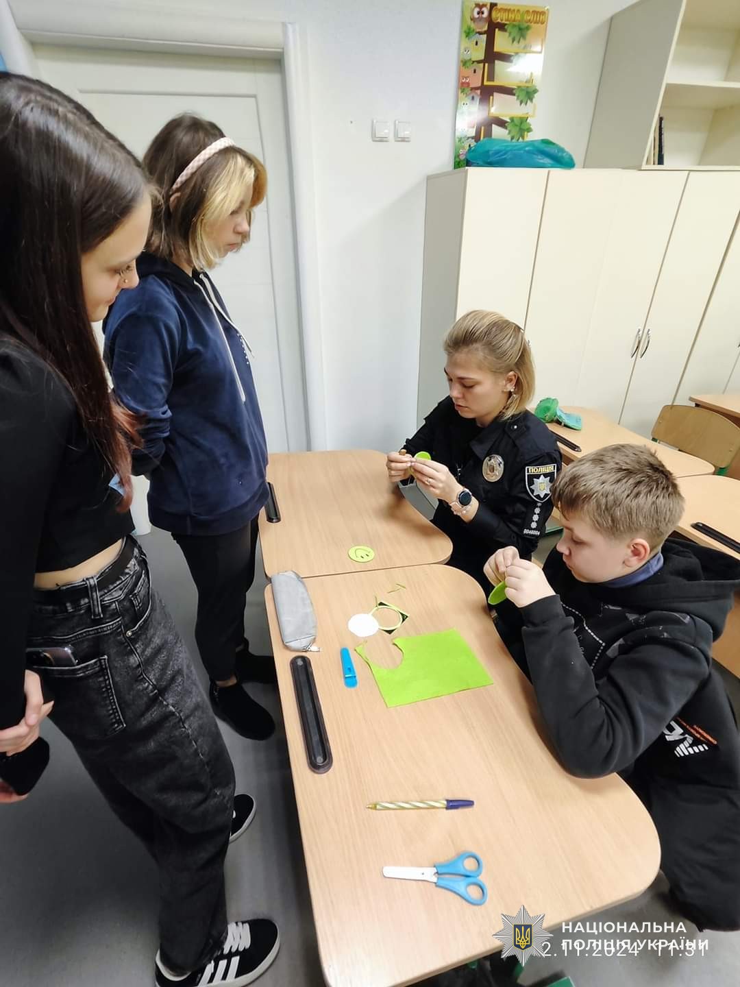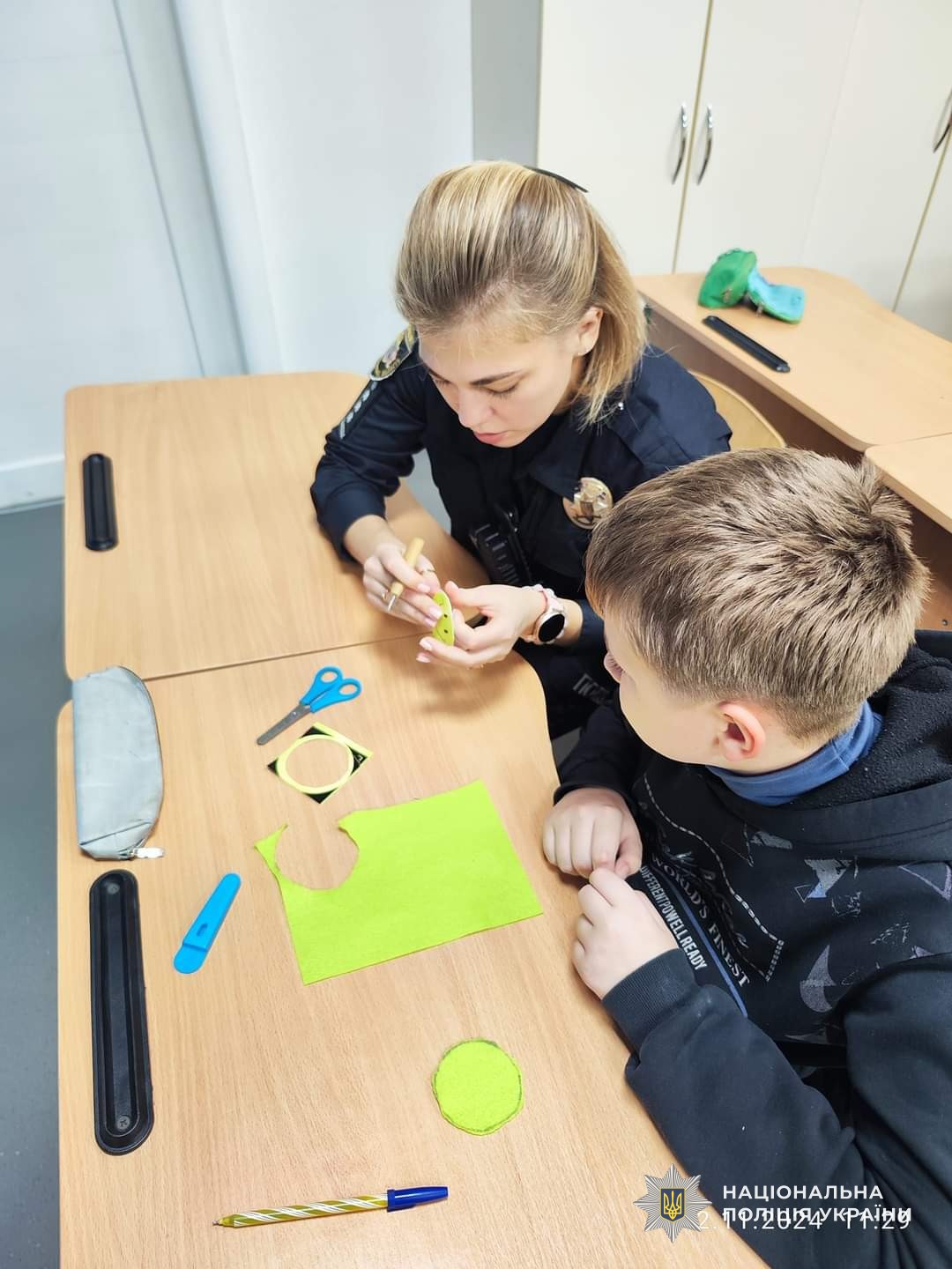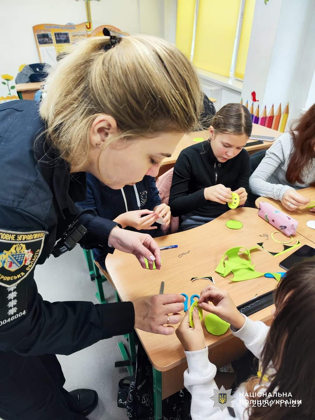 У Синельниковому поліцейська провела для школярів майстер-клас з виготовлення світловідбиваючих флікерів