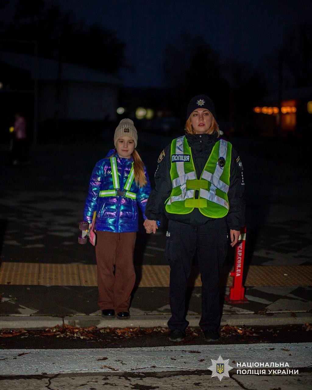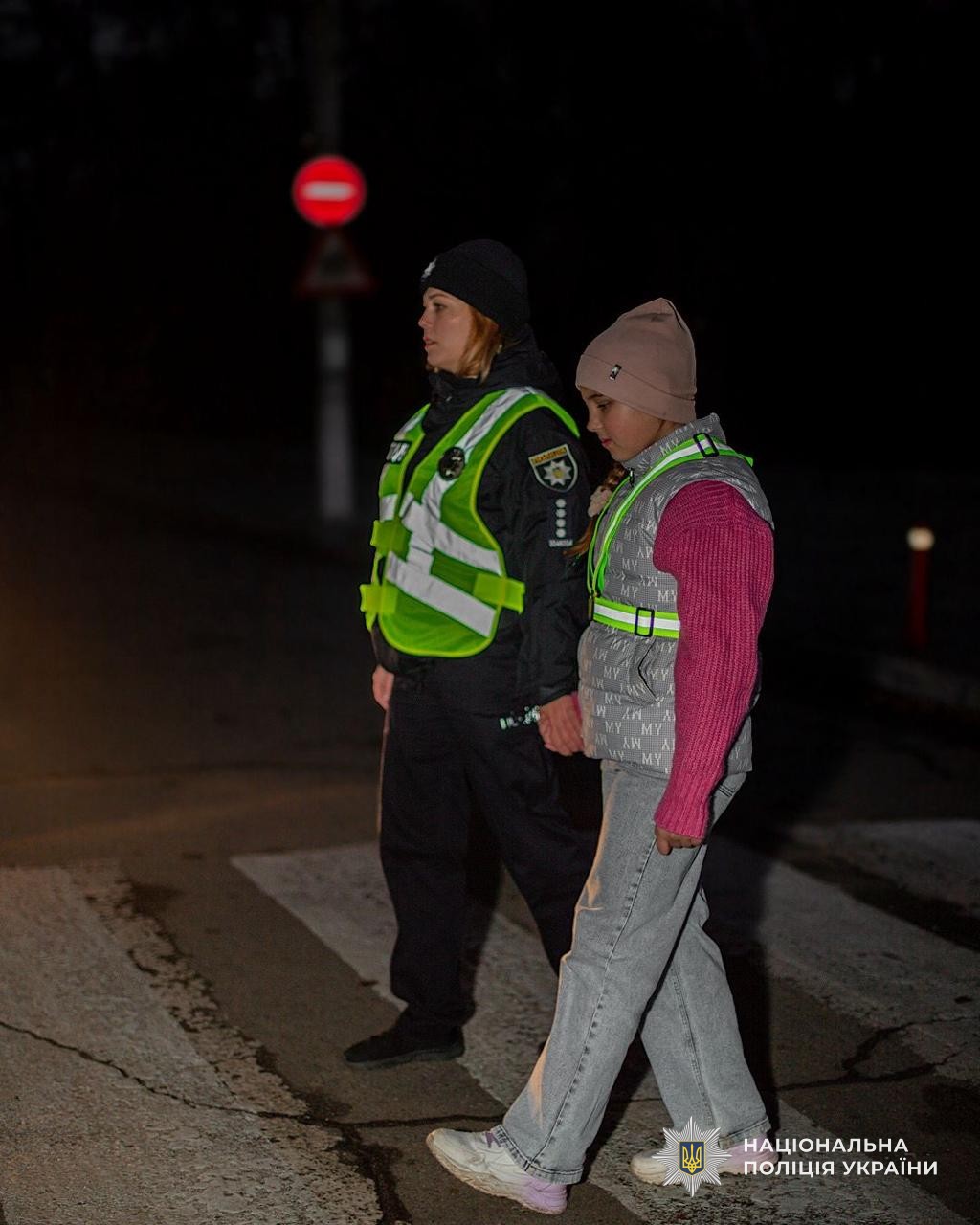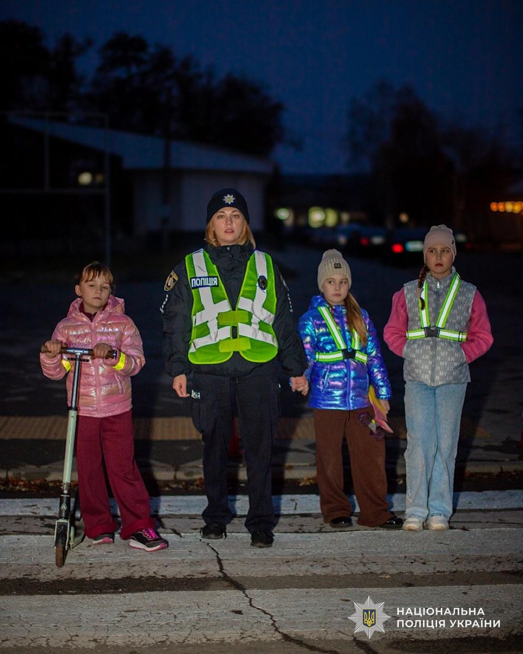У Синельниковому поліцейські Служби освітньої безпеки навчили школярів бути помітними на дорозі
