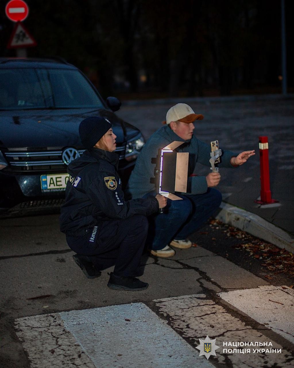 У межах Тижня безпеки дорожнього руху інспектори Служби освітньої безпеки провели в школах міста Синельниково акцію «Засвітись у темряві». Поліцейські наголосили дітям на важливості видимості в темну пору доби та показали, як світловідбивні елементи допомагають водіям завчасно помітити пішохода.