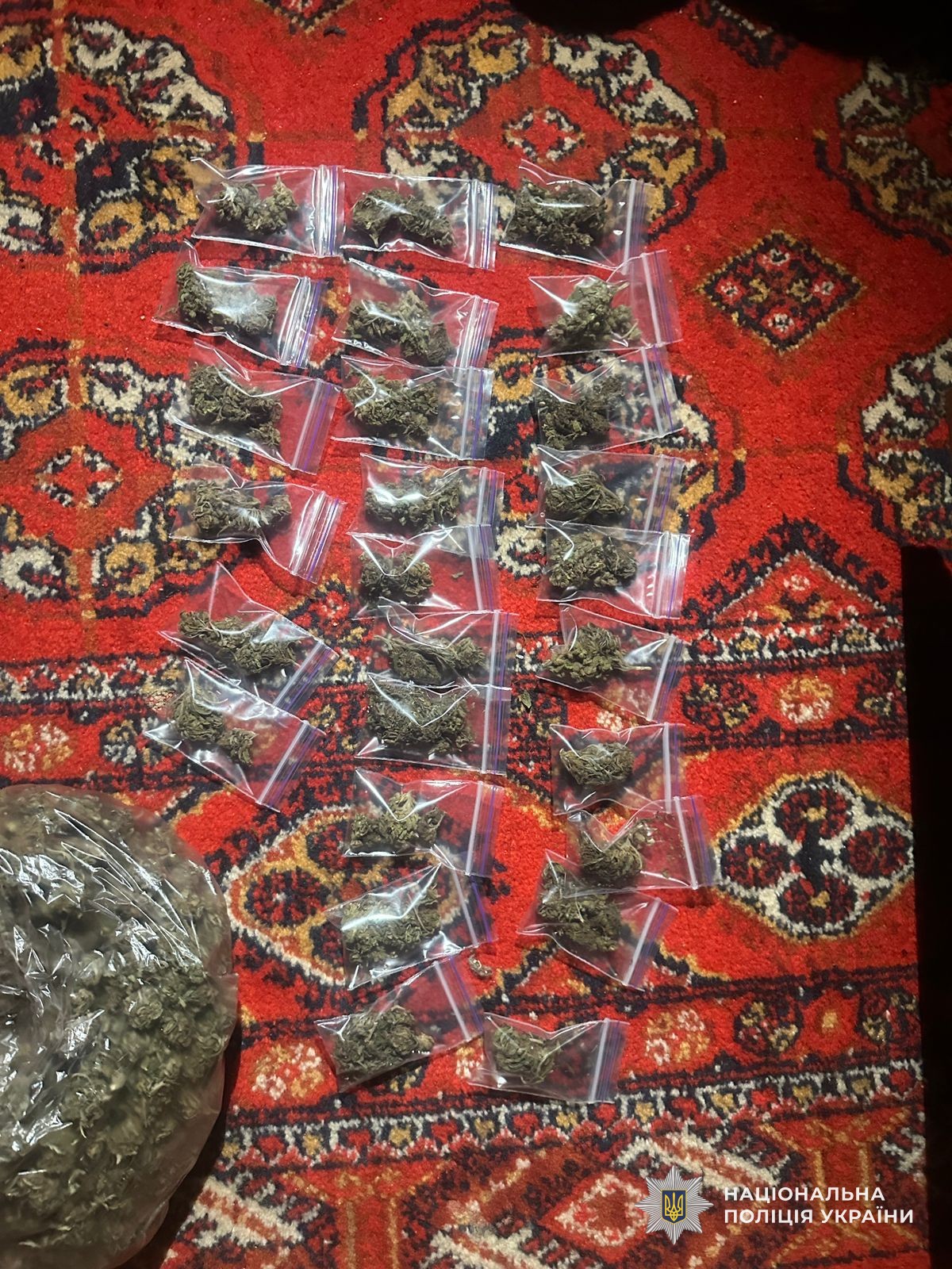 В ході проведення оперативних заходів поліцейські задокументували протиправну діяльність фігуранта. За місцем мешкання 19-річного юнака та в автомобілі було проведено санкціоновані судом обшуки. Під час слідчих дій правоохоронці вилучили 36 сліп-пакетів, паперовий згорток та пакет із речовиною рослинного походження зеленого кольору. Згідно з висновками експертизи, вилучене є наркотичним засобом — канабісом.