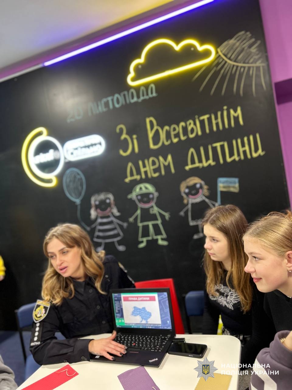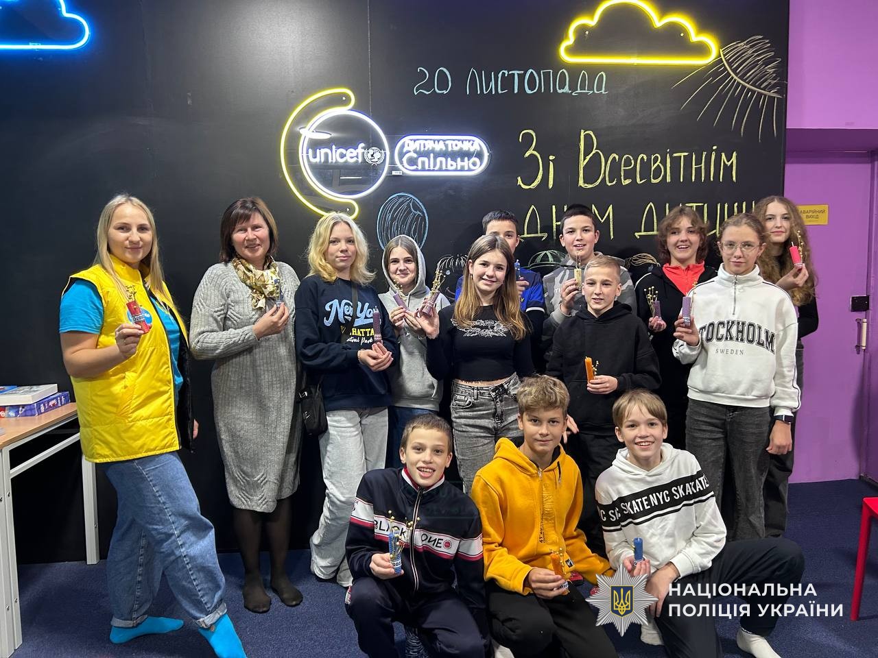 20 листопада з нагоди відзначення країною Всесвітнього дня дитини, правоохоронці завітали до дитячого центру «Дитяча точка «Спільно» у Новомосковську. Для них співробітники поліції підготували цікаву інтерактивну лекцію. Поліцейські акцентували увагу, що всі діти мають рівні права і ця норма знайшла своє відображення у чинному законодавстві України. Вони розповіли історію відзначення цієї дати. Що саме у цей день, 20 листопада 1959 року, Генеральна Асамблея прийняла Декларацію прав дитини, а 20 листопада 1989 року – Конвенцію про права дитини.