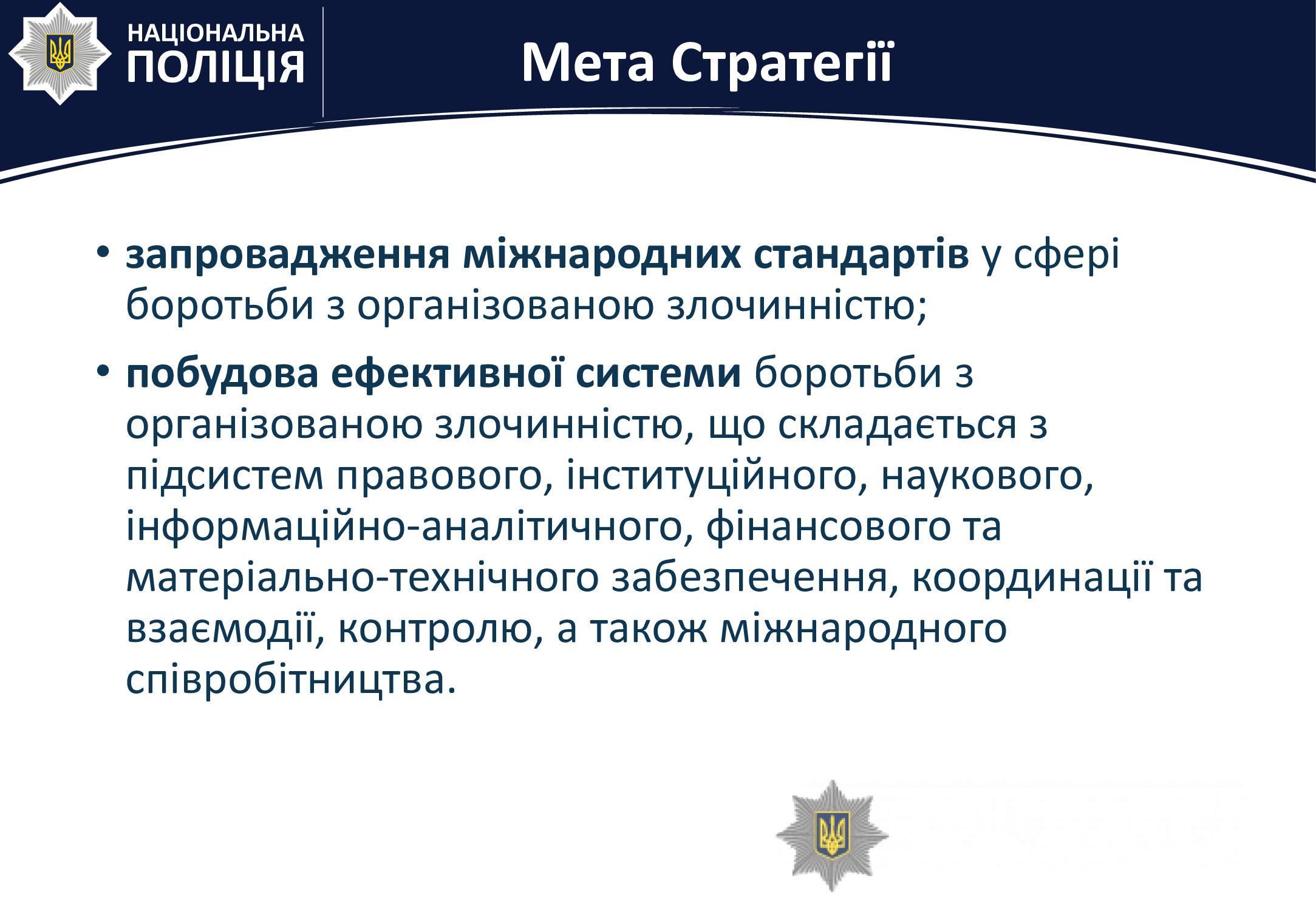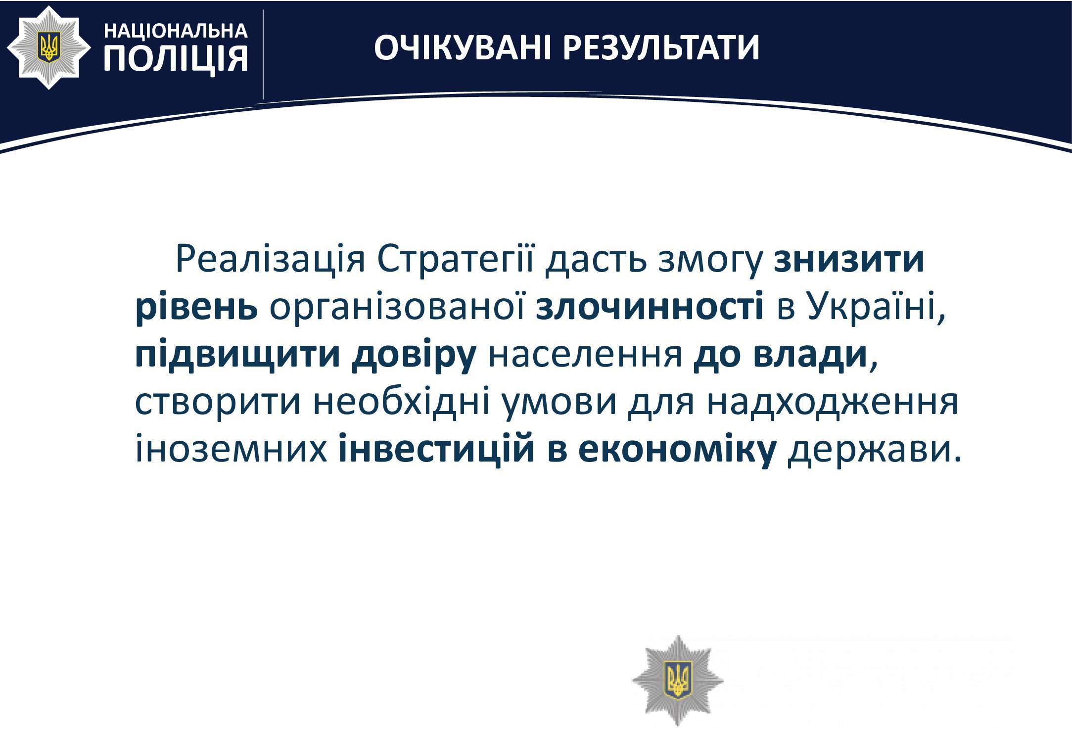«Боротьба з організованою злочинністю має стати одним із пріоритетів державної політики, яку правоохоронні органи будуть реалізовувати у рамках представленої Стратегії. До її розробки активно долучалися також міжнародні партнери, тож у програмі врахували досвід кращих європейських практик. Ефективна та послідовна реалізація Стратегії призведе до зниження рівня організованої злочинності в Україні, і, як наслідок, створить необхідні умови для надходження іноземних інвестицій в економіку держави», - зазначив Глава Нацполіції.