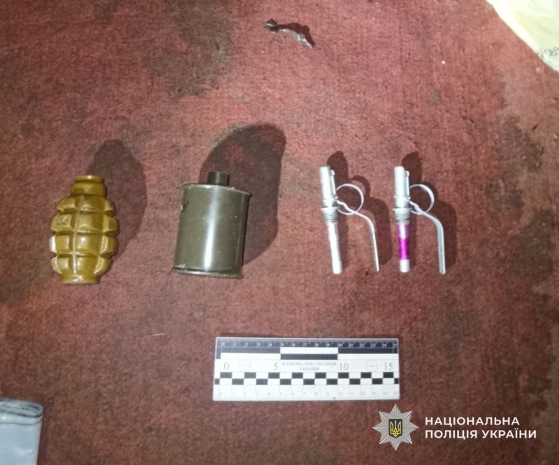 Під час подальшого обшуку у приміщенні виявили ще чотири гранати та димові шашки. Чоловіка затримали в порядку ст. 208 Кримінального процесуального кодексу України.
