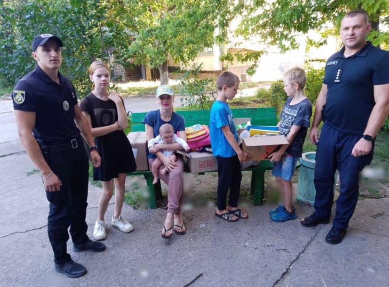 18 серпня вранці правоохоронці спільно з Анастасією з благодійного фонду «Надійні обійми Марганця» підготували 4-х діток з багатодітної родини до школи.