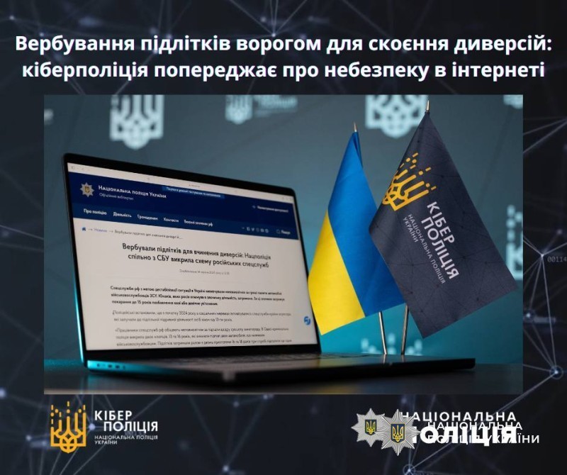 Вербування підлітків ворогом для скоєння диверсій: кіберполіція попереджає про небезпеку в інтернеті