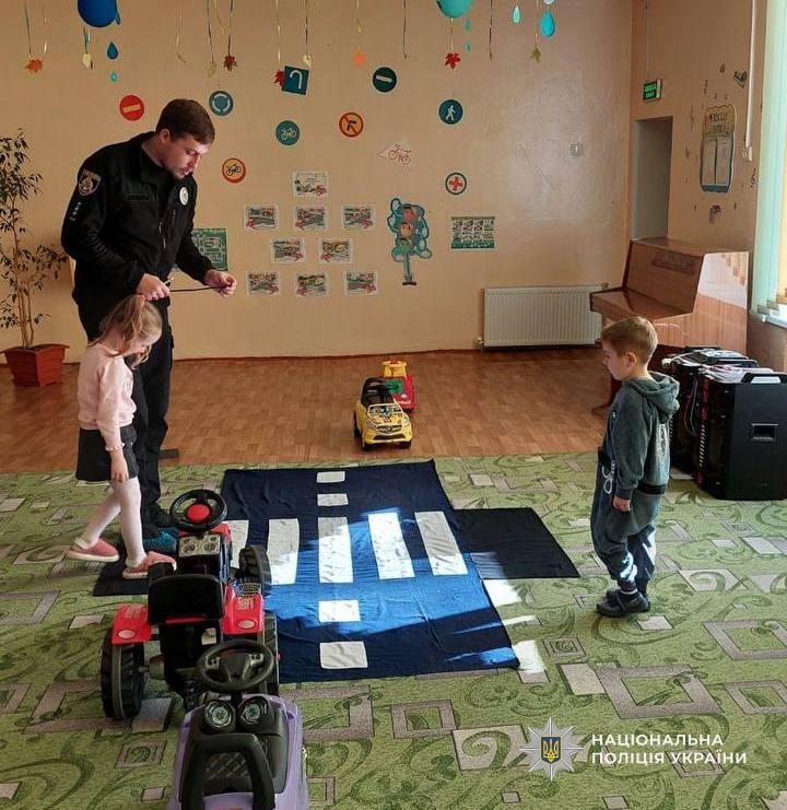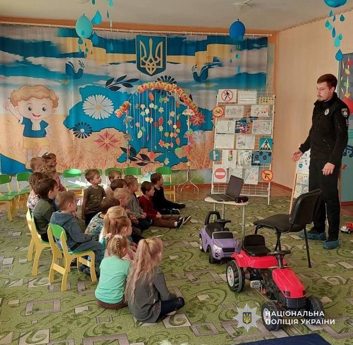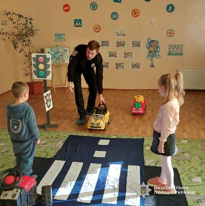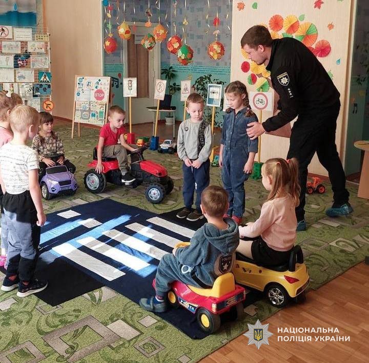 Весело вивчаємо дорожні знаки: у Кривому Розі поліцейський за допомогою гри познайомив дошкільнят з правилами дорожнього руху