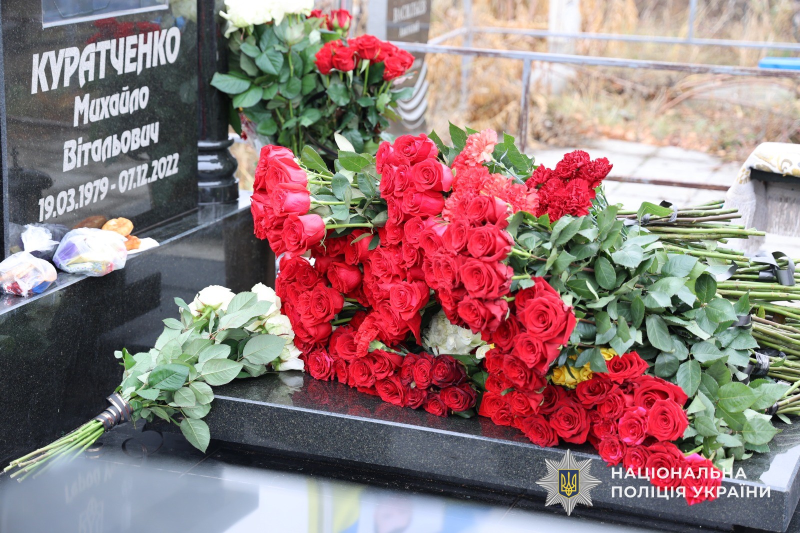 Сьогодні, на цвинтарі, де похований поліцейський, колеги, рідні та друзі, поклали квіти до його могили, промовили добрі слова, вшанували пам’ять загиблого хвилиною мовчання.