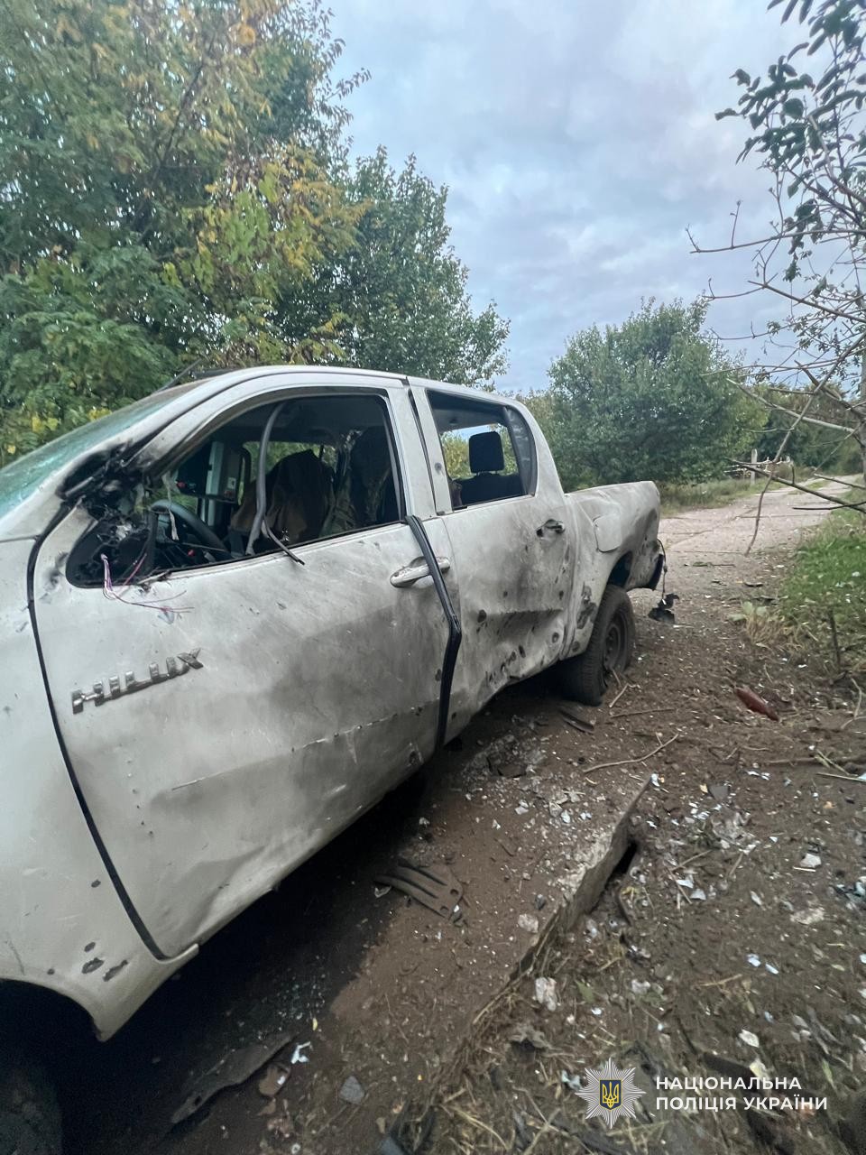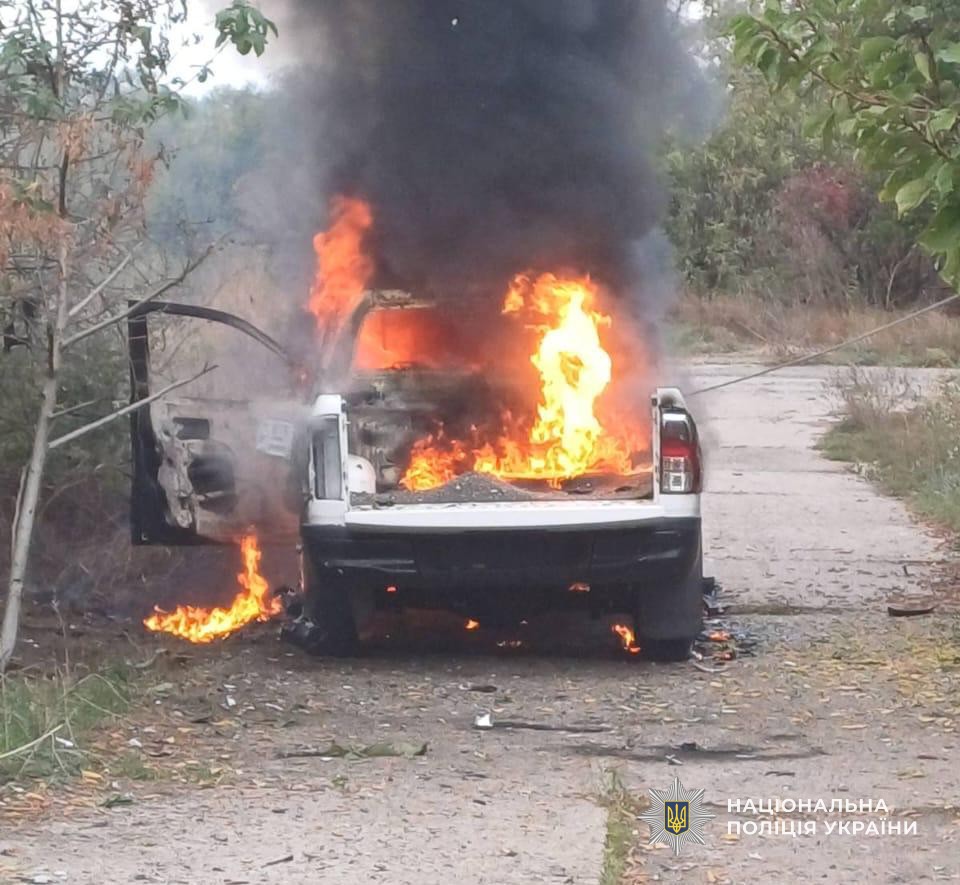 Також цього дня група вибухотехніків ГУНП в Дніпропетровській області в одному із сіл Марганецької громади здійснювала спеціальні вибухотехнічні роботи по знищенню нерозірваних боєприпасів. О 17-ї годині почався обстріл, який тривав близько двох годин. Окупанти цілили з артилерії та дронів по місцю, де стояв службовий автомобіль. Машина зазнала значних пошкоджень, а потім вигоріла вщент. Правоохоронці укрилися від ворожих снарядів спочатку у лісосмузі, а після їм вдалося переміститися до укриття. На, щастя, ніхто з поліцейських не постраждав.