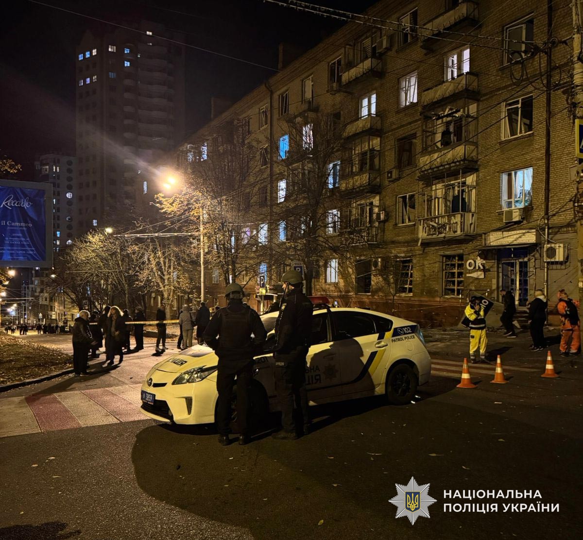 На місця влучань прибули всі екстрені служби. Поліцейські фіксують наслідки атаки та надають допомогу постраждалим.