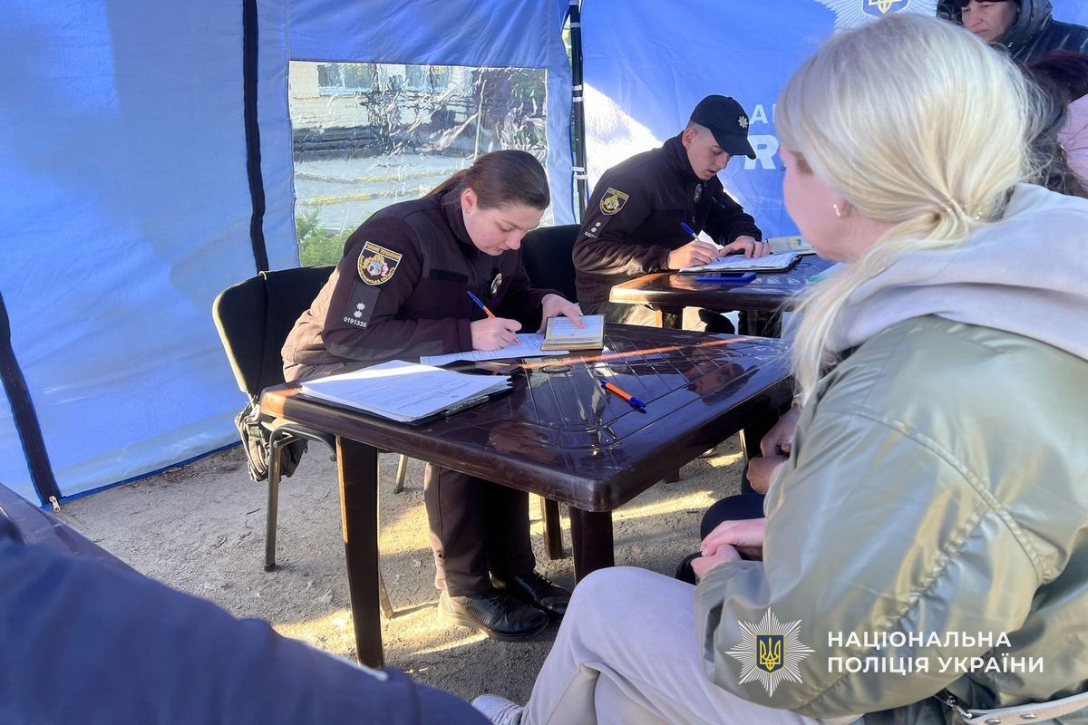 На місцях атак розгорнуті мобільні пункти прийому звернень громадян, куди постраждалі можуть звернутися за допомогою та для написання заяви про пошкодження майна. Поліцейські продовжують надавати допомогу потерпілим та фіксувати наслідки російської атаки. Слідчо-оперативні групи опитують потерпілих та збирають речові докази, щоб встановити остаточні наслідки російської атаки та задокументувати воєнний злочин країни-агресора.