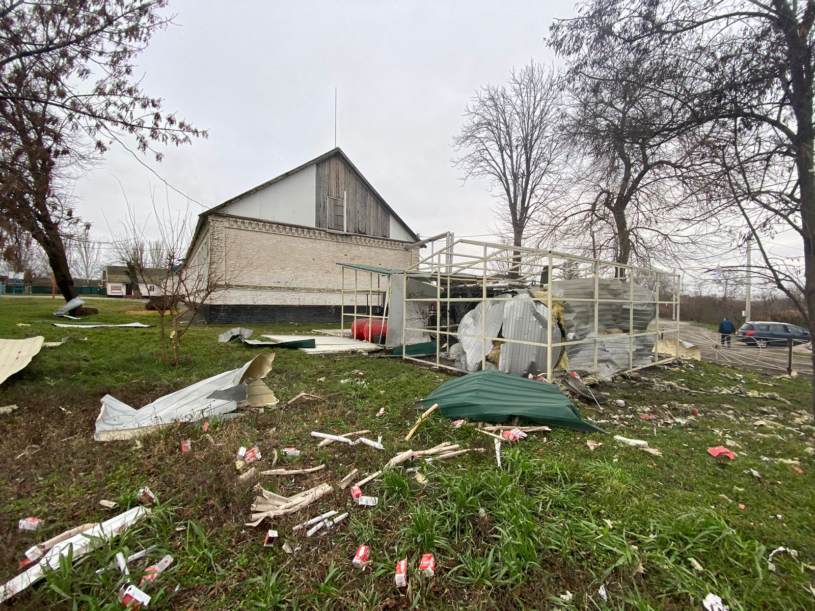 Пошкоджено навчальний заклад, приватні будинки, господарські будівлі. Постраждала людина.