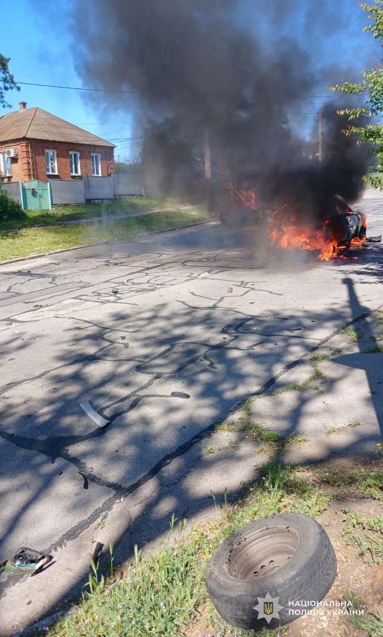 Через удар дрону на одній з найбільш людних вулиць міста постраждала 27-річна водійка. Її авто вигоріло вщент, пожежу загасили рятувальники. Близько 13-ї години росіяни здійснили артобстріл, осколкові поранення отримали двоє чоловіків та жінка. Всім надано необхідну медичну допомогу.
