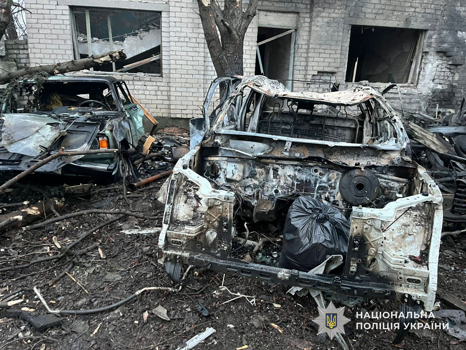 У Павлограді вночі російські війська здійснили удар безпілотниками. Внаслідок атаки сталося займання нежитлової будівлі, знищено автомобілі. На місці працювали поліцейські, які задокументували наслідки обстрілу, обмежили доступ до небезпечної зони та зібрали необхідні матеріали.