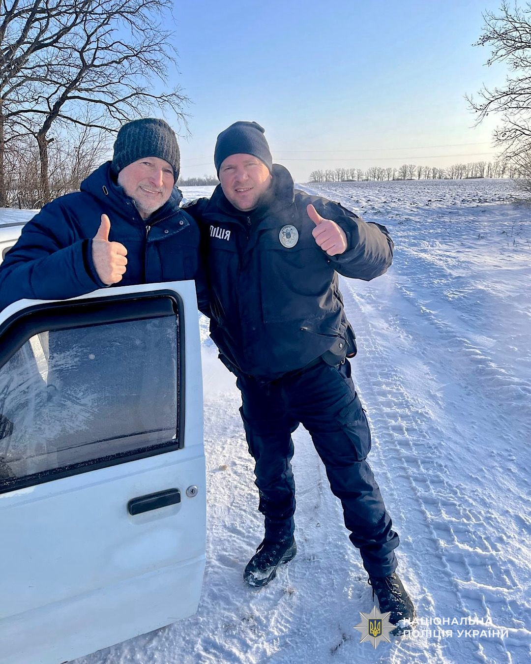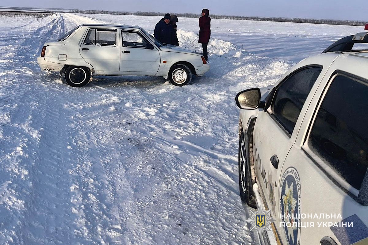 Підійшовши до автівки, правоохоронці з’ясували, що в салоні перебували водій та жінка. Чоловік повідомив, що вони з самого ранку перебувають у полі, а автомобіль не заводиться через розряджений акумулятор. У складних погодних умовах та за сильного морозу така ситуація могла становити небезпеку для людей.