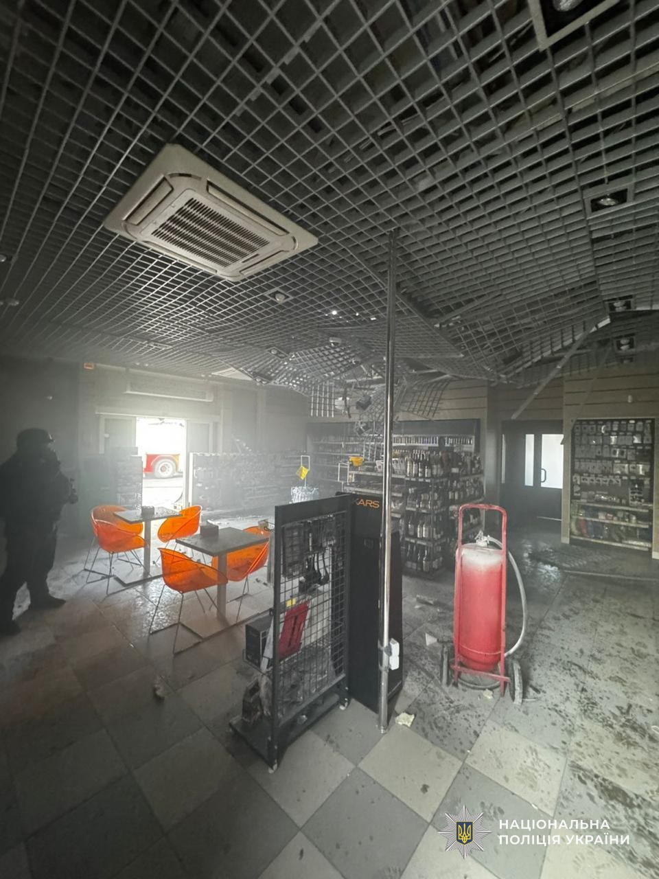На місці події працювали поліцейські та інші профільні служби. Поліцейські обмежили рух транспорту, огородили місце події, зафіксували пошкодження та задокументували наслідки ворожої атаки.