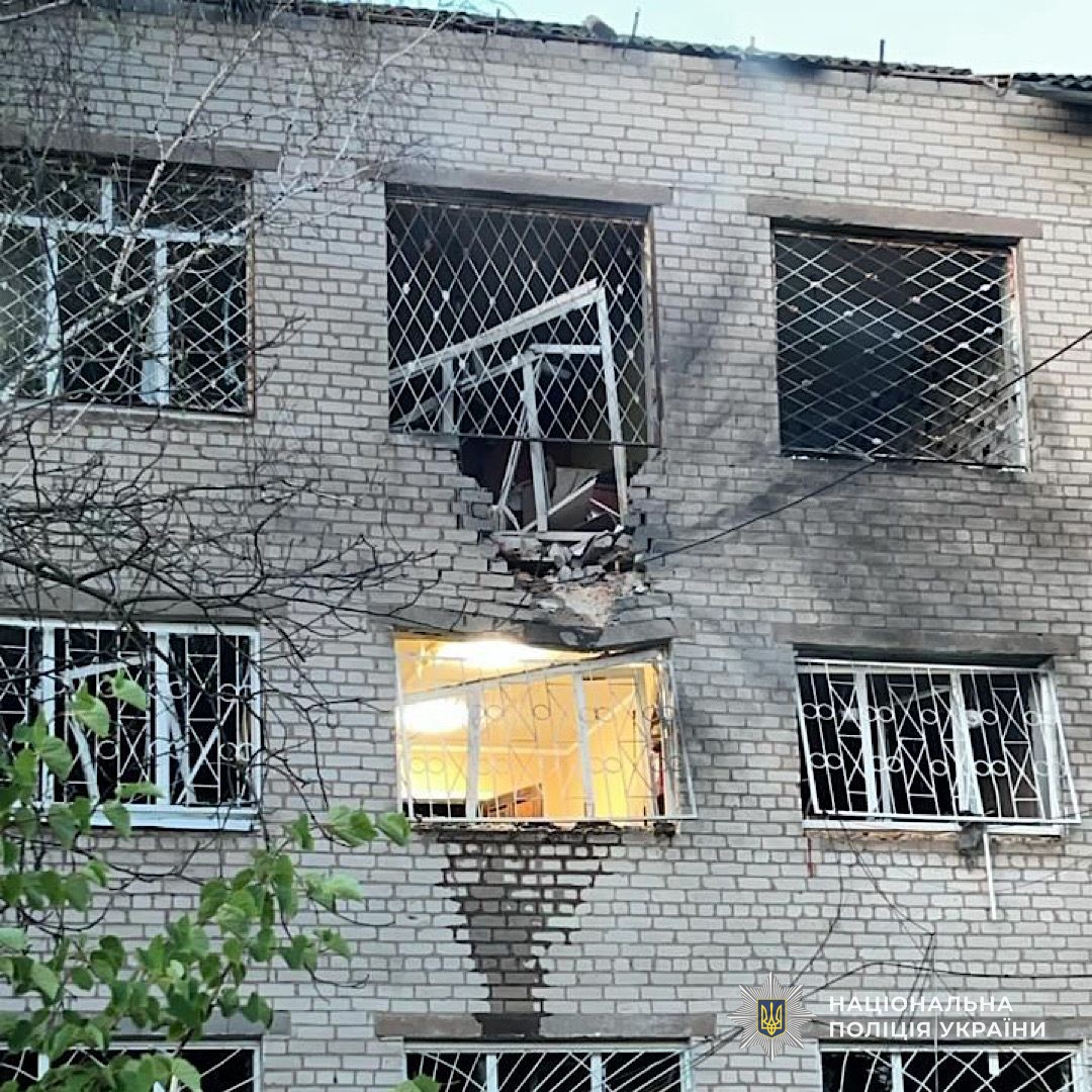 Сьогодні, 24 червня, близько 3-ї години ночі армія рф завдали удару безпілотником по адміністративній будівлі в м. Марганець. Внаслідок атаки правоохоронці отримали акубаротравми - їм надали необхідну медичну допомогу. Потрощені дах, стіни, фасад та майно всередині будівлі, понівечено службовий автомобіль. На місцях атак слідчі зафіксували пошкодження інфраструктури, багатоквартирних будинків, приватних осель, гаражу та магазину.