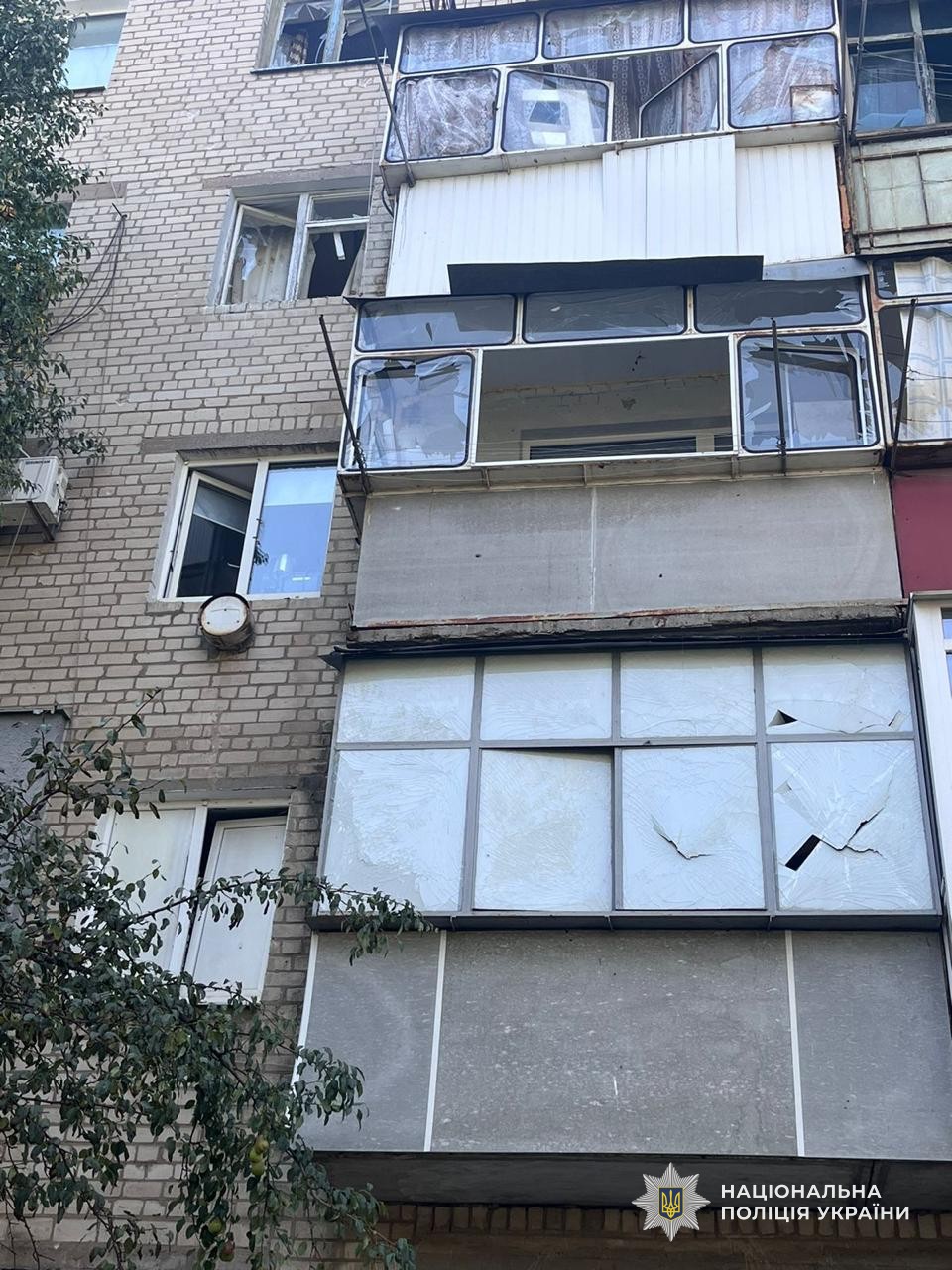 У Нікополі росіяни цілили FPV-дронами та зі ствольної артилерії по інфраструктурі міста. Внаслідок обстрілу пошкоджень зазнали будівля поліції, п’ятиповерхові та приватні житлові будинки, господарча споруда, гаражі, легковий автомобіль та два підприємства.