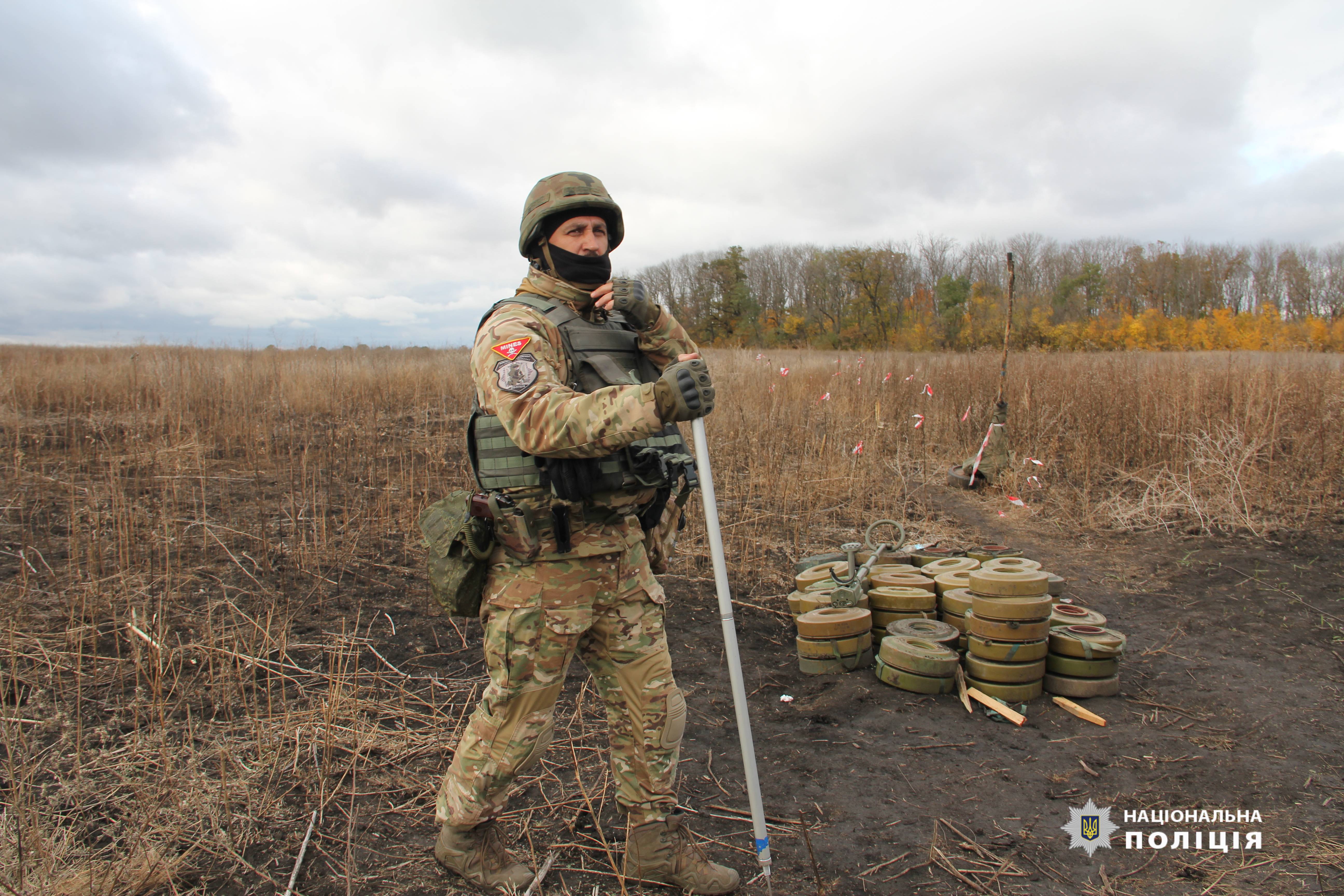Поліцейські не зупиняють роботи з розмінувань навіть на вихідних. Наразі в Харківській області працює 31 група вибухотехніків, які розміновують Ізюмський, Куп’янський, Чугуївський та частину Харківського районів.