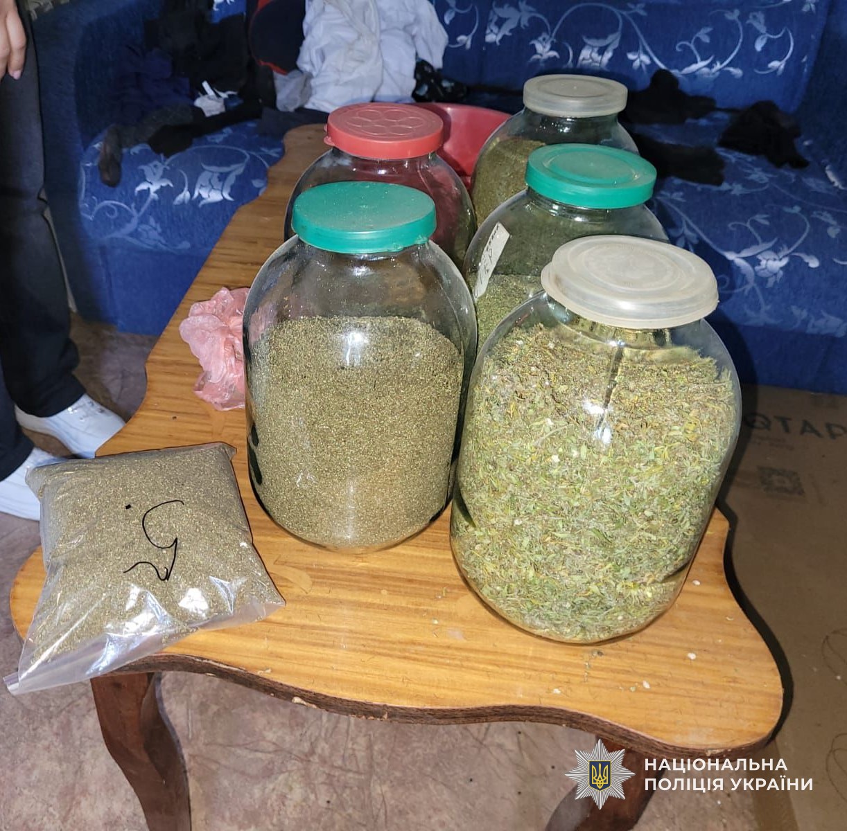 Окрім психотропів та грошових коштів: майже 45 тис. гривень, близько 6 500 тис. доларів та 3 тис. євро, на території приватного домоволодіння зловмисника поліцейські вилучили майже 20 кущів конопель. Виявлені речові докази правоохоронці направили на експертизу.